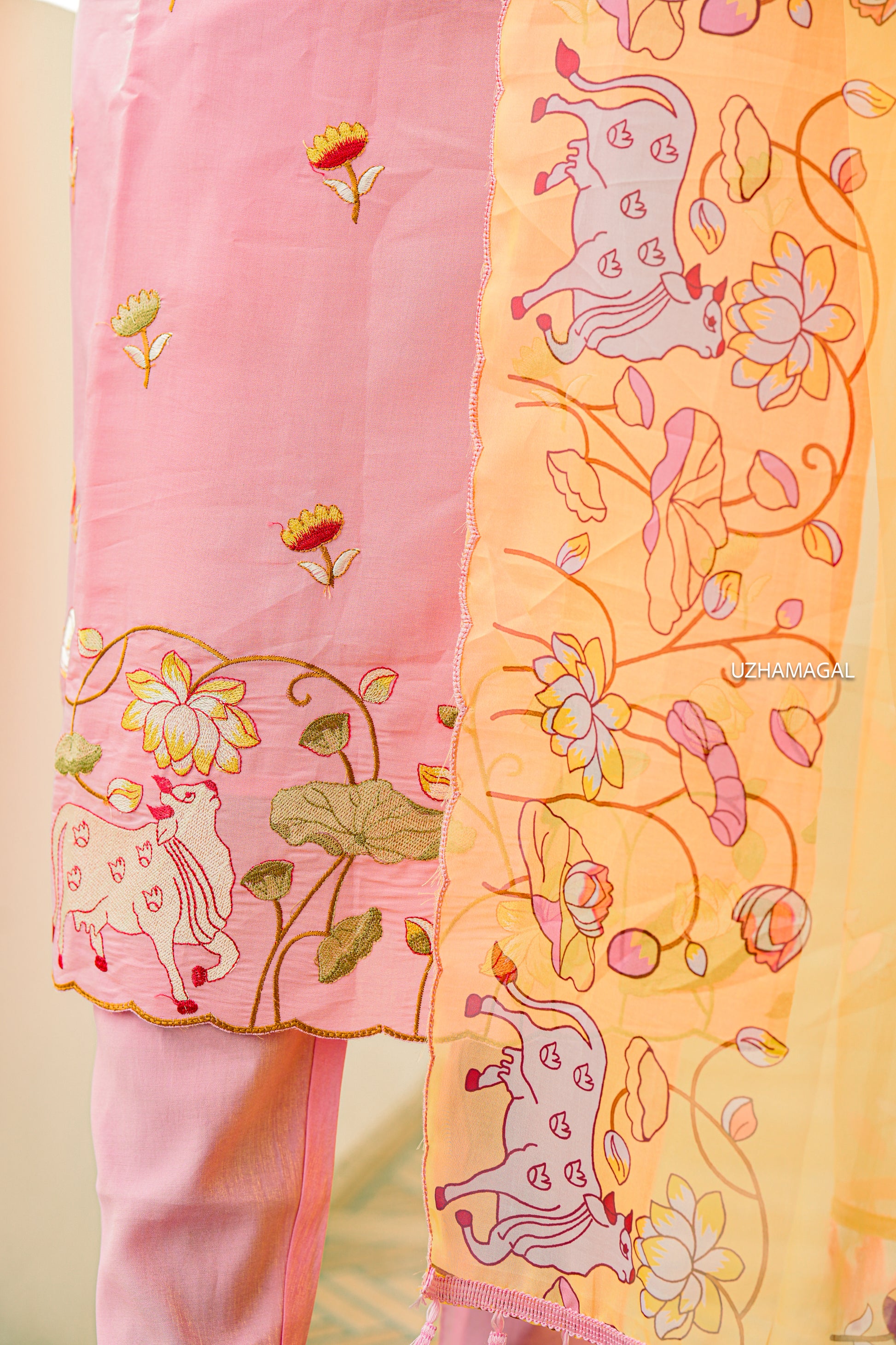 Introducing the advika—a stunning 3-piece kurti set that celebrates timeless ethnic elegance. Crafted in soft pastel shades, this ensemble features an exquisite Nandhi embroidery design that adds a touch of traditional artistry to your wardrobe. Perfect for festive occasions, family gatherings.