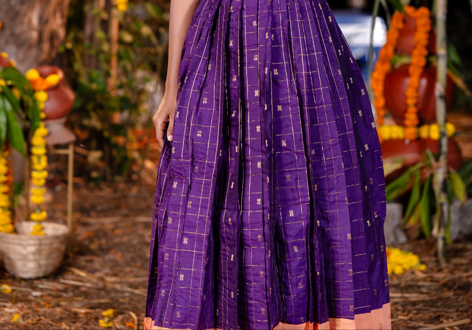 Introducing Anamitra, an exquisite ethnic ensemble that celebrates timeless elegance. This beautifully coordinated skirt and top set features intricate gold zari weaving that catches the light with every movement, adding a touch of luxury to your festive wardrobe. The thoughtfully curated color combination creates a striking visual appeal that works seamlessly for weddings, celebrations, and special occasions.