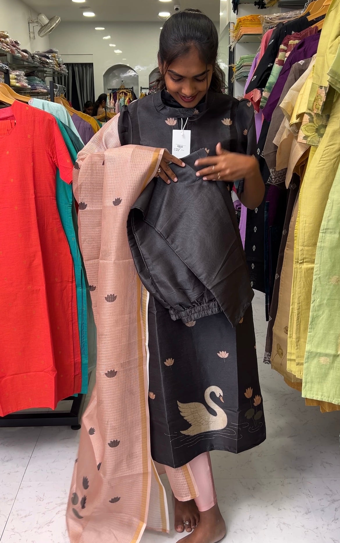 Elevate your workday wardrobe with the Annapakshi kurti set, designed for the modern professional. This sophisticated black ensemble combines traditional elegance with contemporary office aesthetics, making it perfect for workplace settings where you want to look polished and put-together. The kurti set offers comfortable styling that transitions seamlessly from meetings to casual office moments!