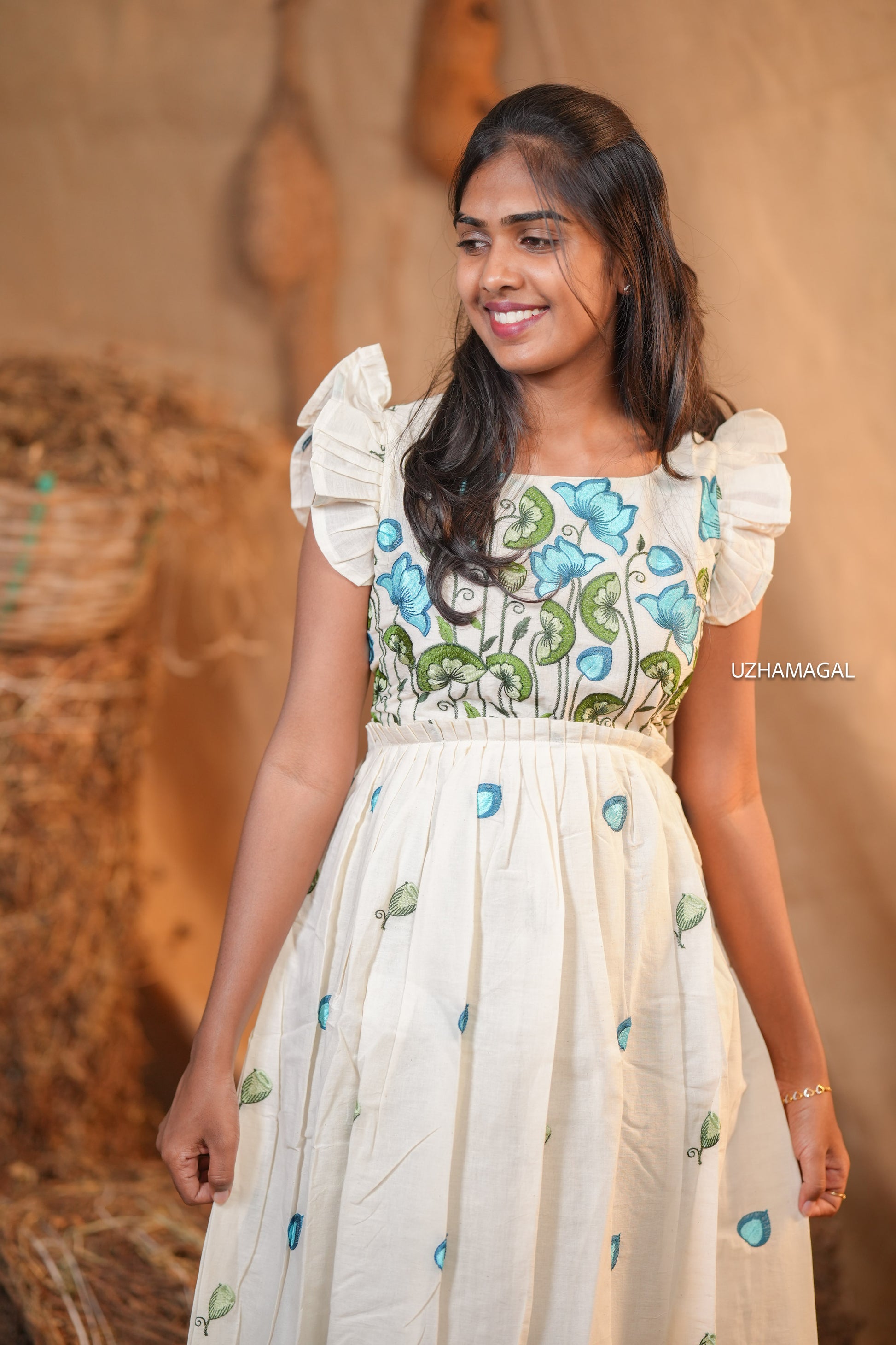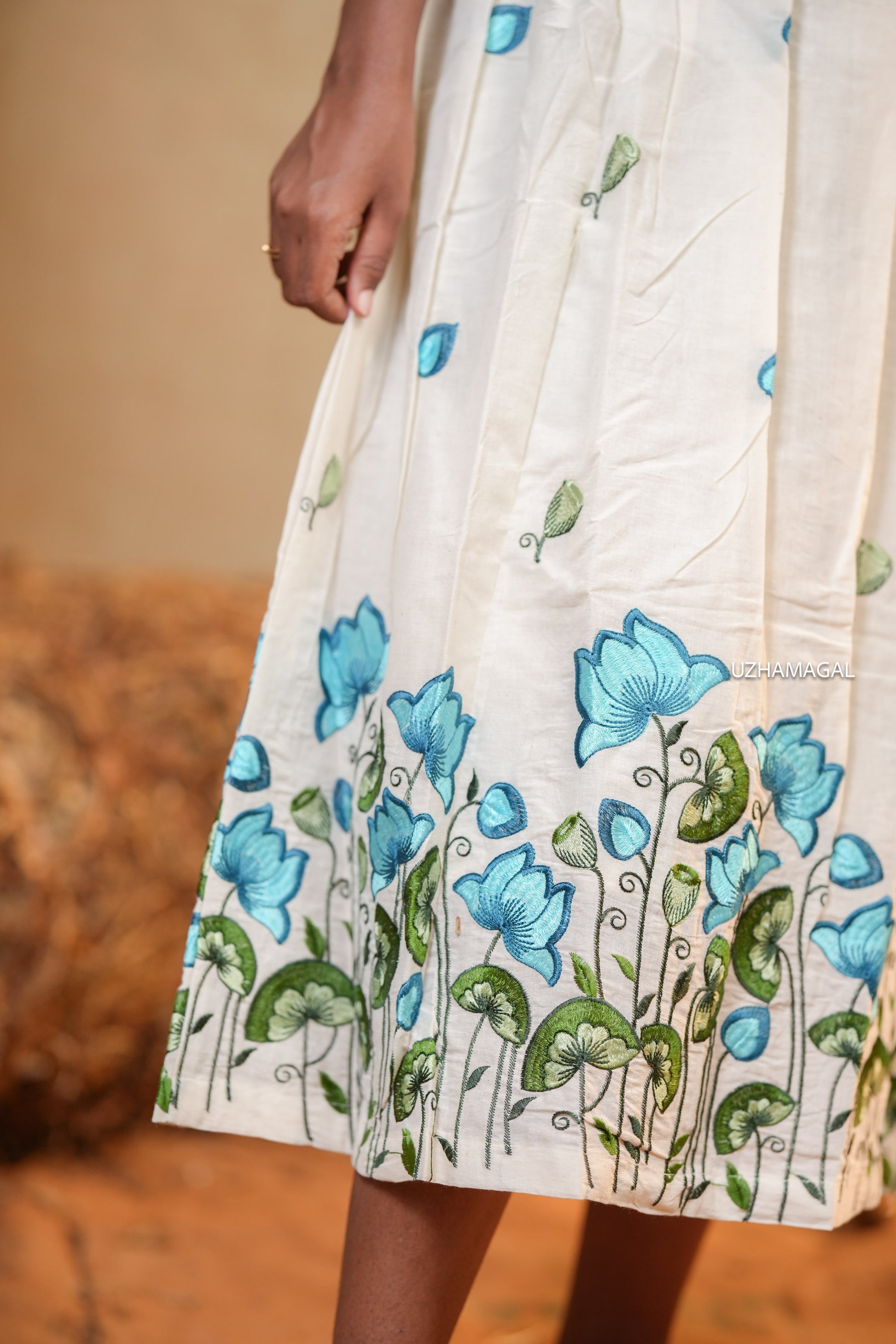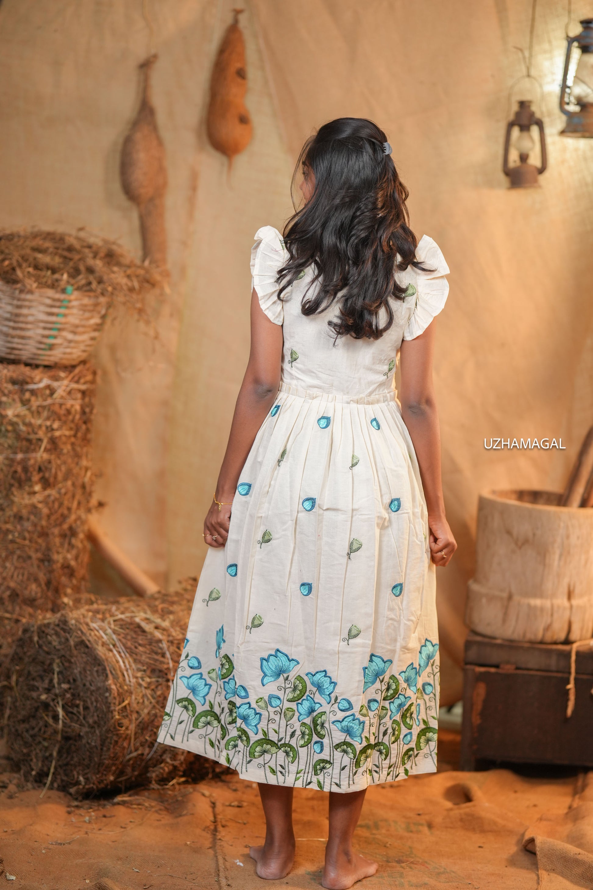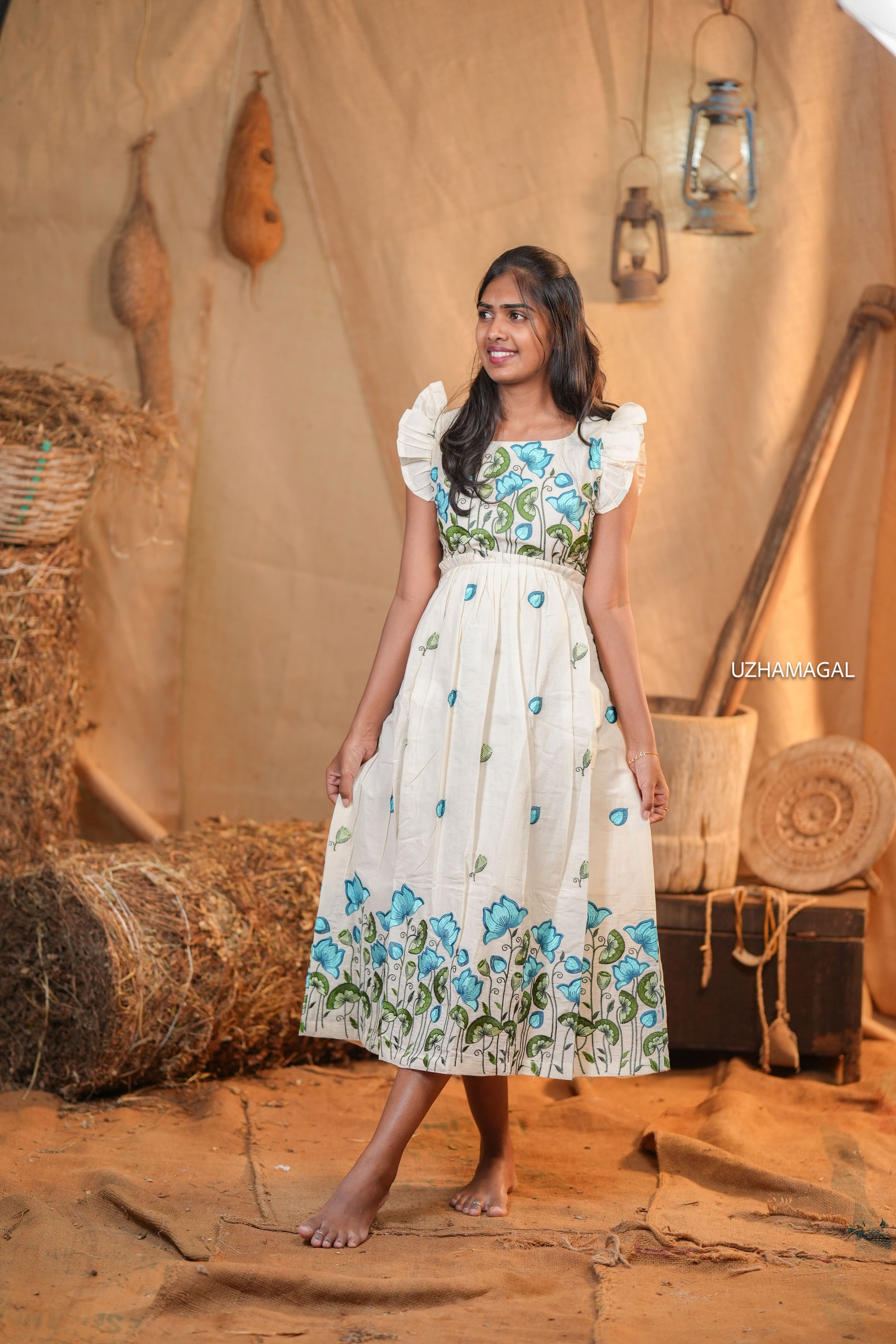 Meet your new favorite dress—a beautiful blue cotton piece that combines elegance with everyday practicality. Crafted from soft, breathable fabric, it keeps you comfortable from morning to night, whether you're at home or exploring the world. The thoughtful embroidered accents add character and charm, Perfect for travel!