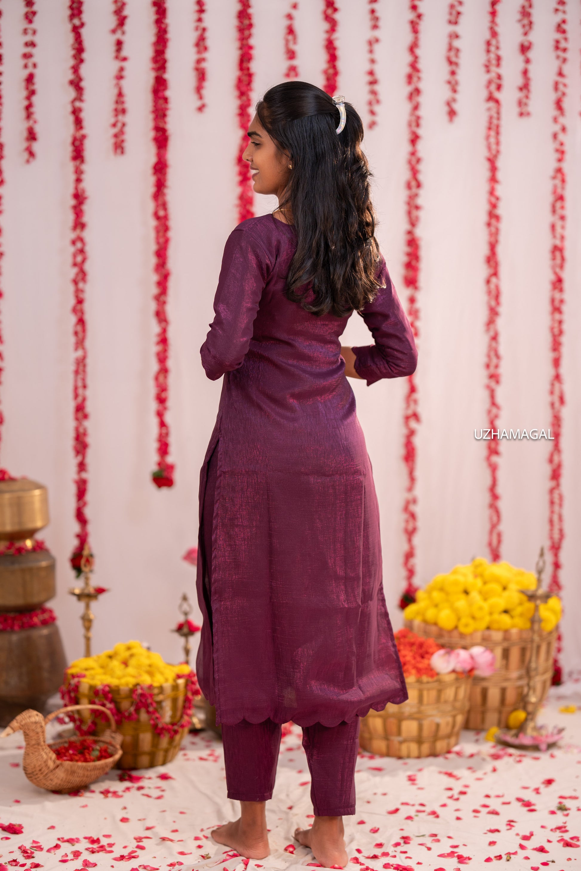 This elegant grape-colored co-ord set includes a stylish kurti and matching pant, perfect for daily and casual wear. Its comfortable fabric and refined design make it easy to dress up or down, offering both style and ease throughout your day. Ideal for those who appreciate effortless elegance in everyday attire.