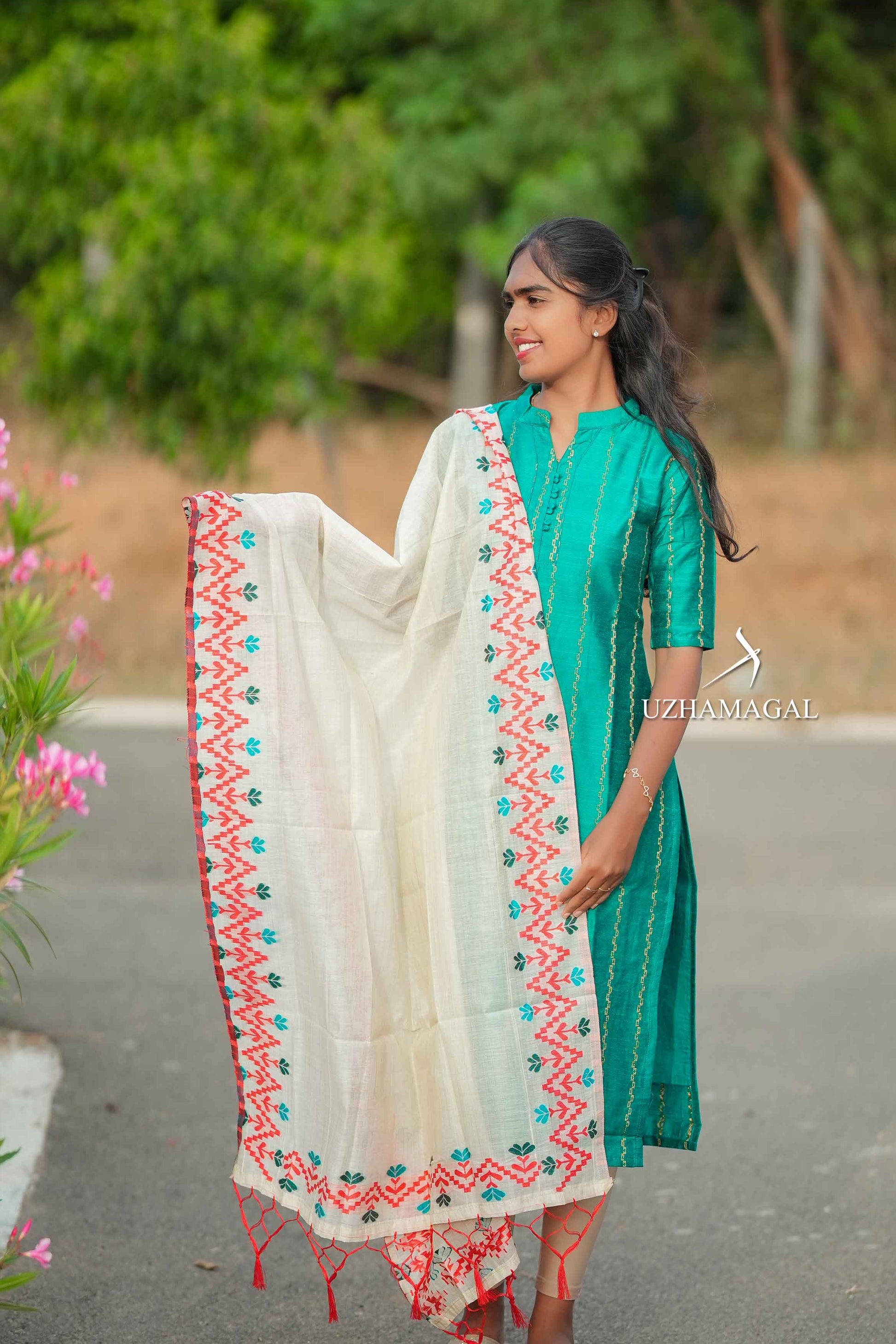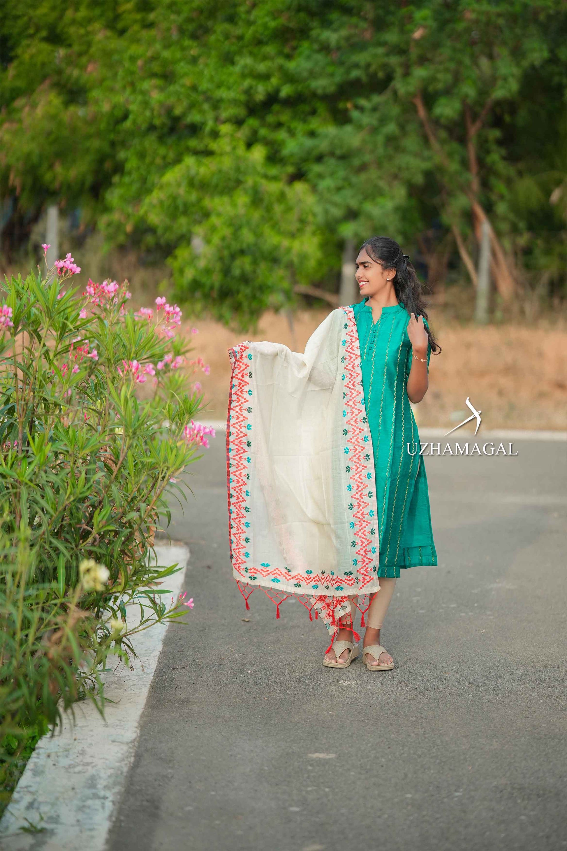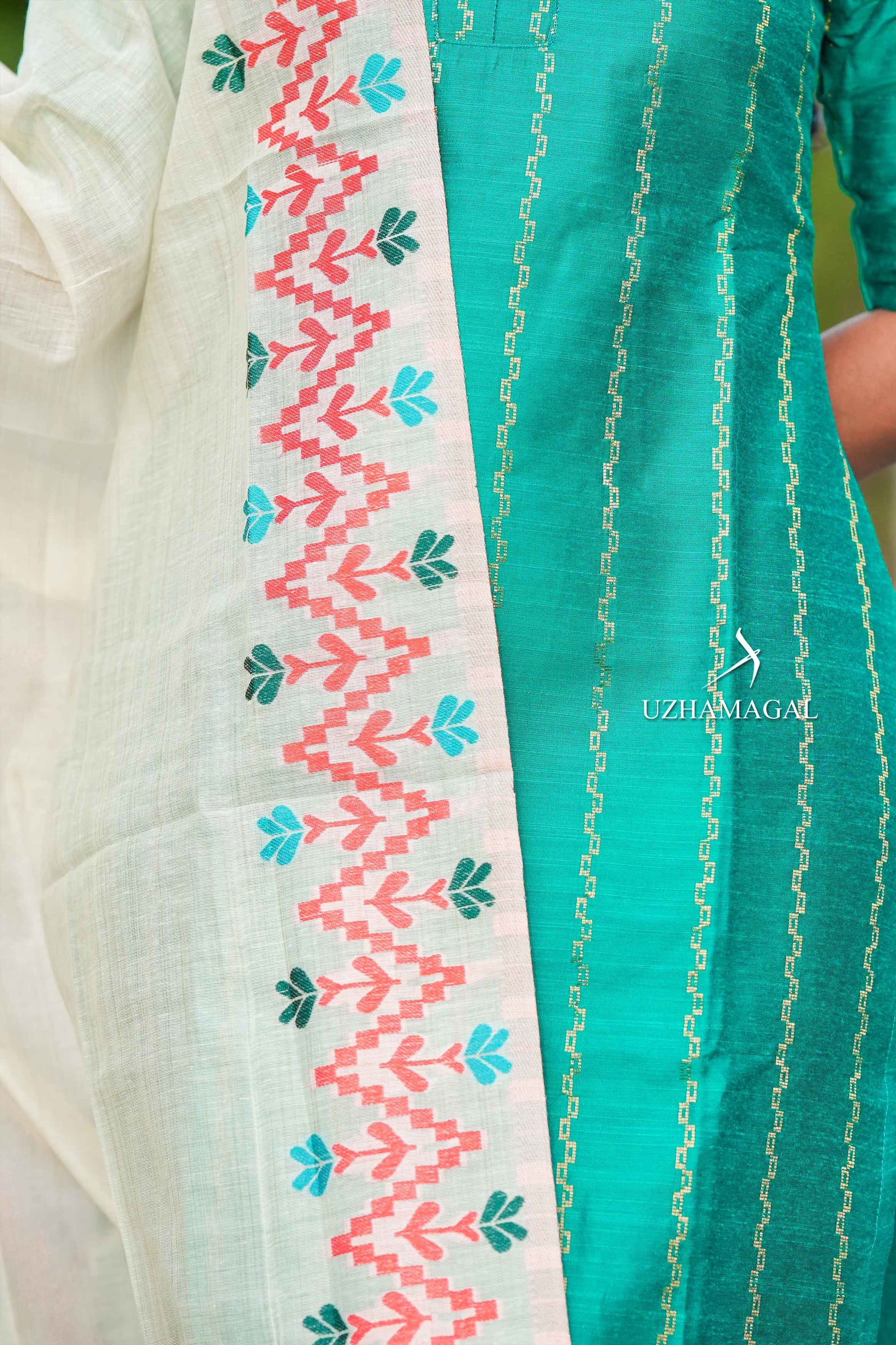 Greenish Grace brings timeless elegance to your wardrobe with its vibrant hue and refined design. This sophisticated kurti set seamlessly transitions from everyday wear to special occasions and festive functions. The carefully chosen color palette complements a variety of skin tones