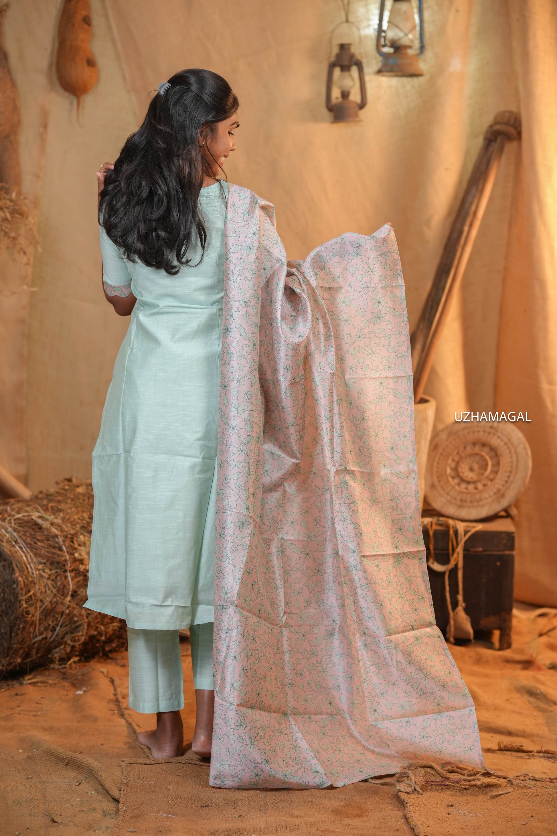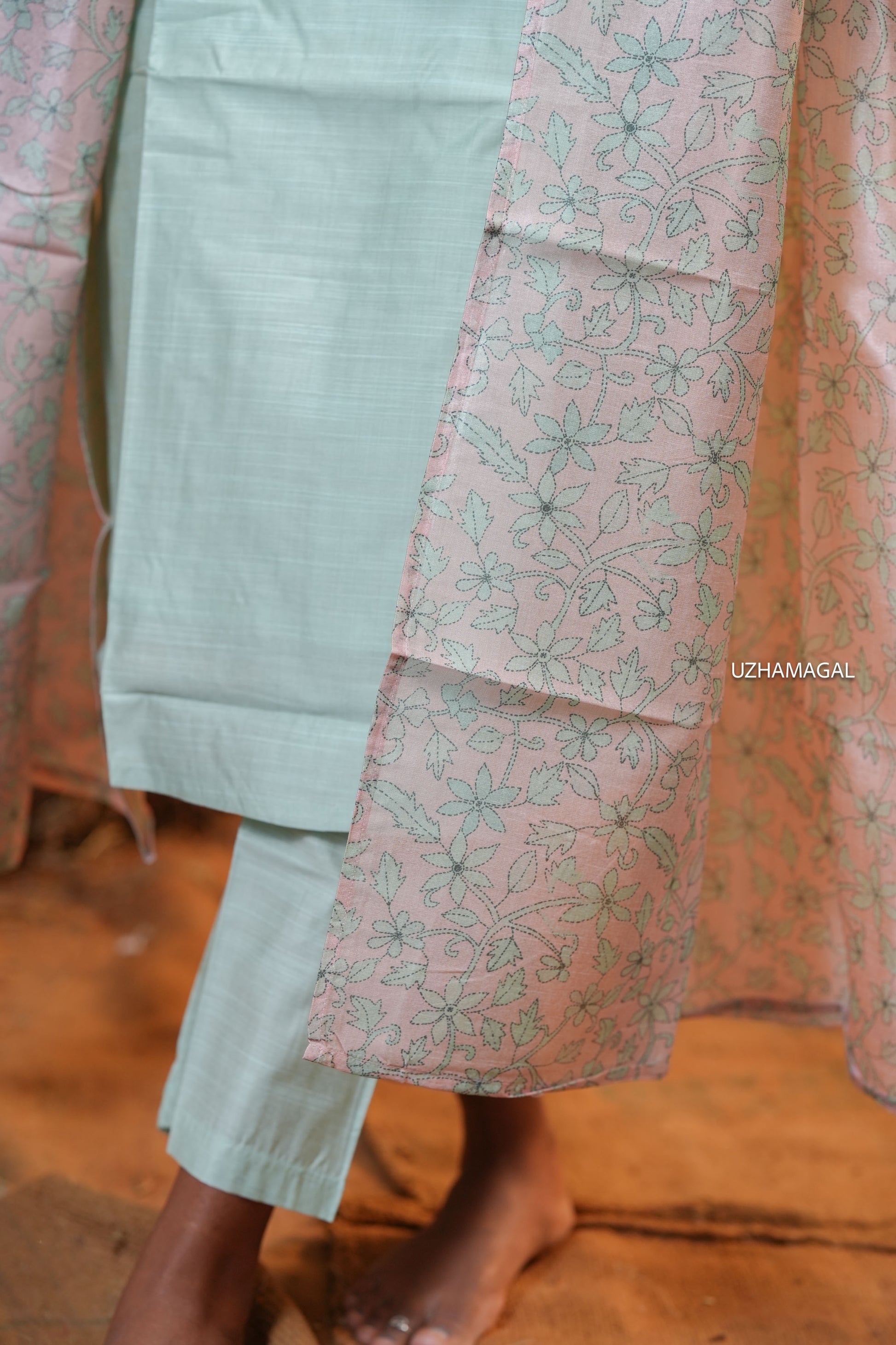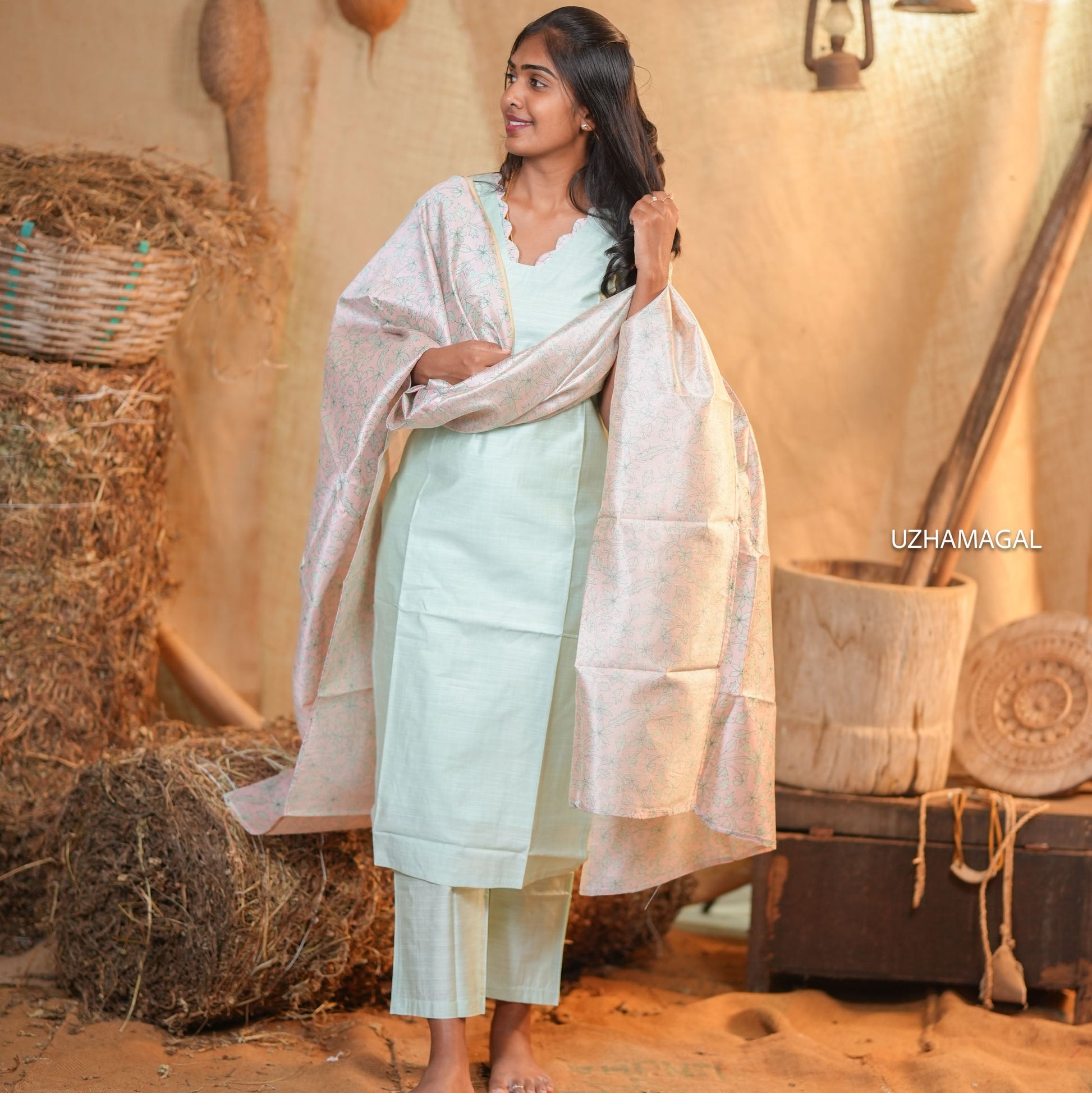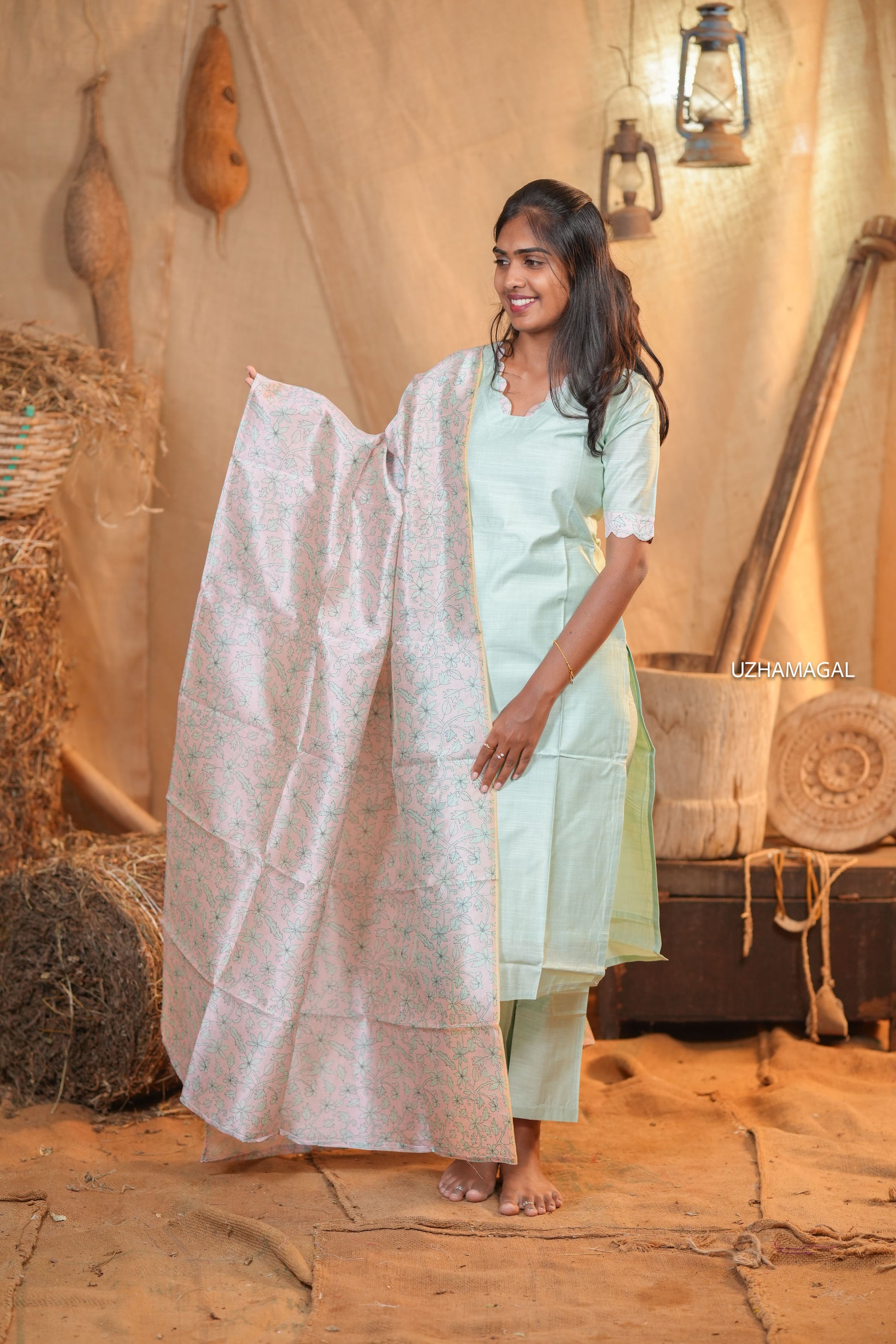 Discover the perfect blend of comfort and grace with this beautiful light green kurti in a soft pistachio shade. The charming floral print brings life and personality to your collection, while the matching dupatta completes your look with effortless elegance.