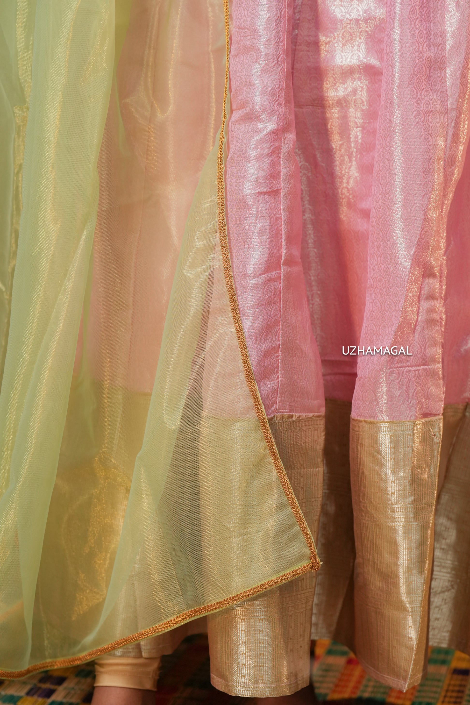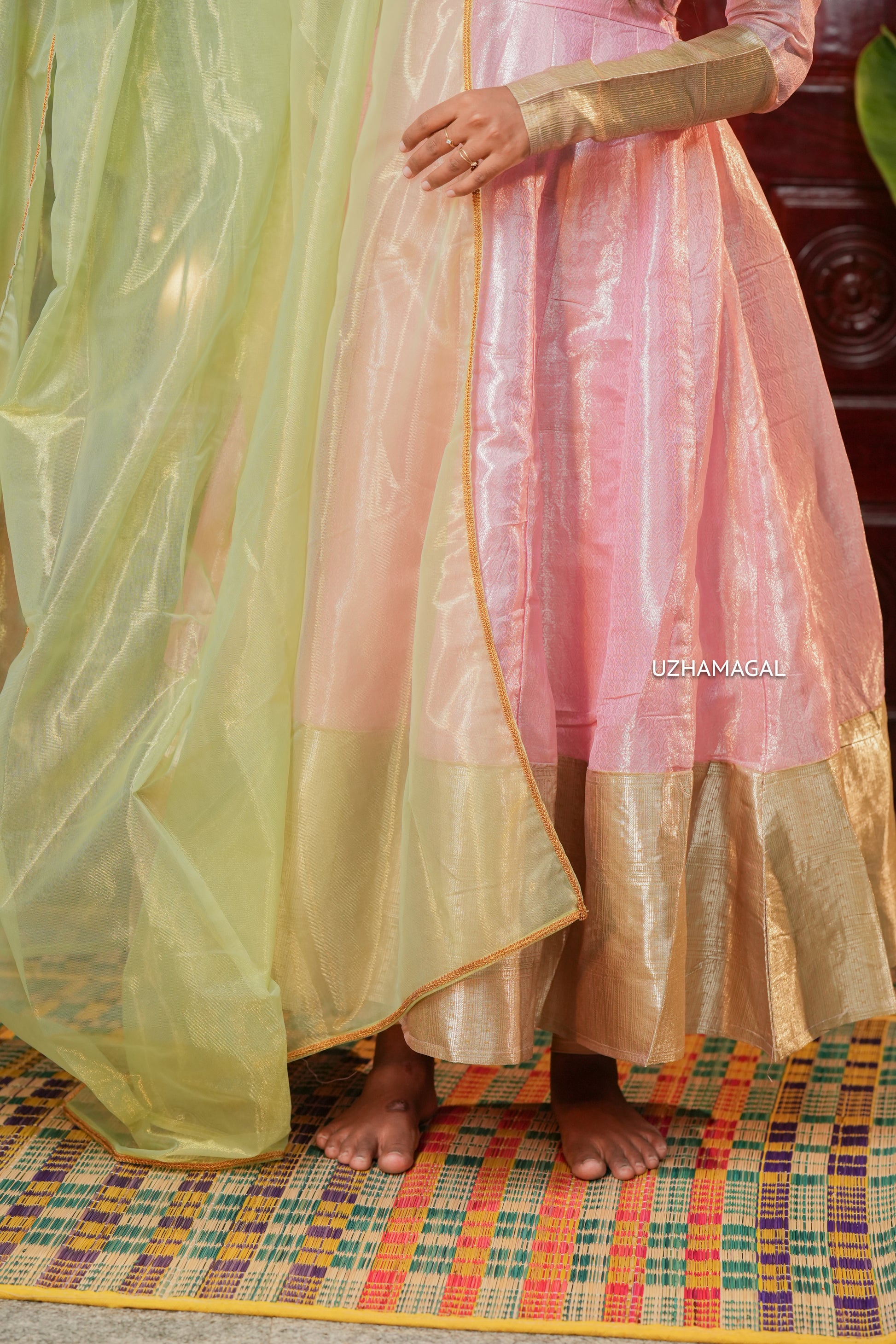 Embrace timeless elegance with the Kalyani Rose, a stunning pink anarkali maxi that celebrates traditional ethnic grace. This full-length ensemble features a soft pastel pink base adorned with intricate detailing, paired with a complementary pastel green dupatta that adds dimension and sophistication. The elegant dupatta drapes beautifully, allowing you to style it in multiple ways to suit your preference for occassions!