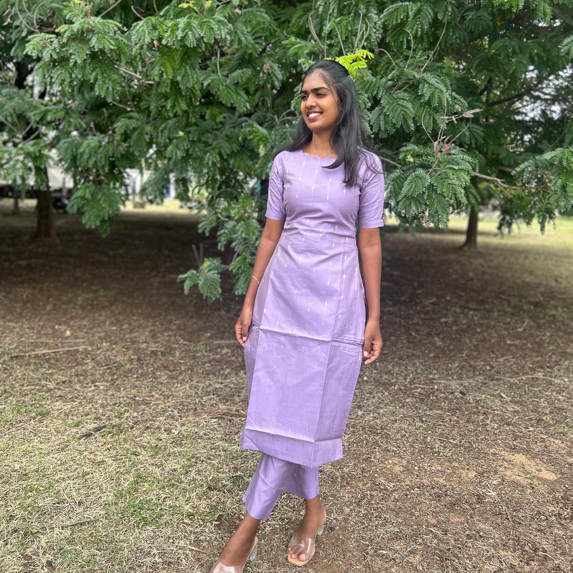 Expertly crafted from luxurious silk tusser, the Lavi lavender kurti set is both elegant and comfortable. The perfect addition to any wardrobe, its pretty design and high-quality material provide a sophisticated and chic look. Elevate your style with this must-have piece.