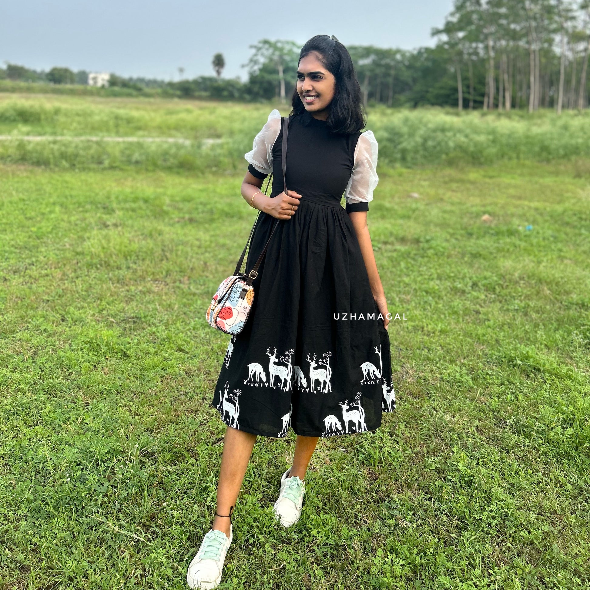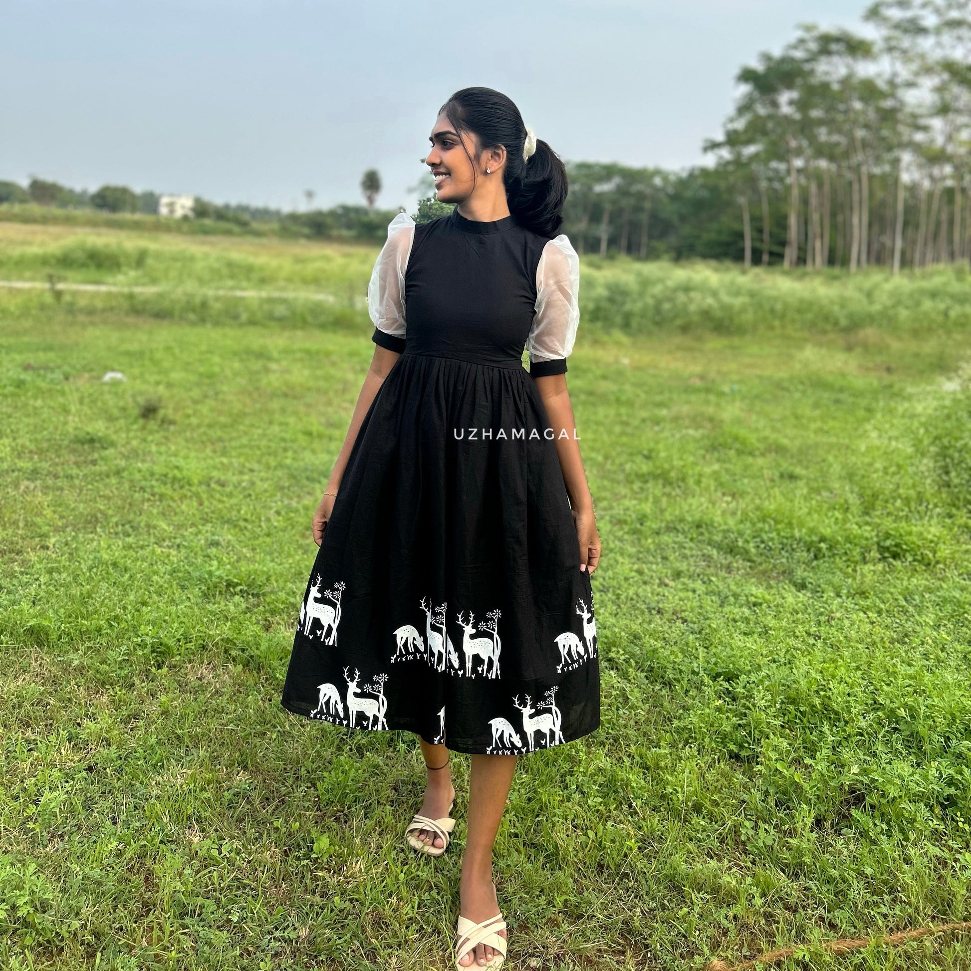 Indulge in the all-day comfort of our Midnight Deer Dress. This cotton ensemble is expertly crafted for relaxation, featuring a relaxed fit and exceptional breathability, making it perfect for casual outings or leisurely days. Revel in its lightweight feel and effortless style, offering a laid-back yet elegant look that's unparalleled