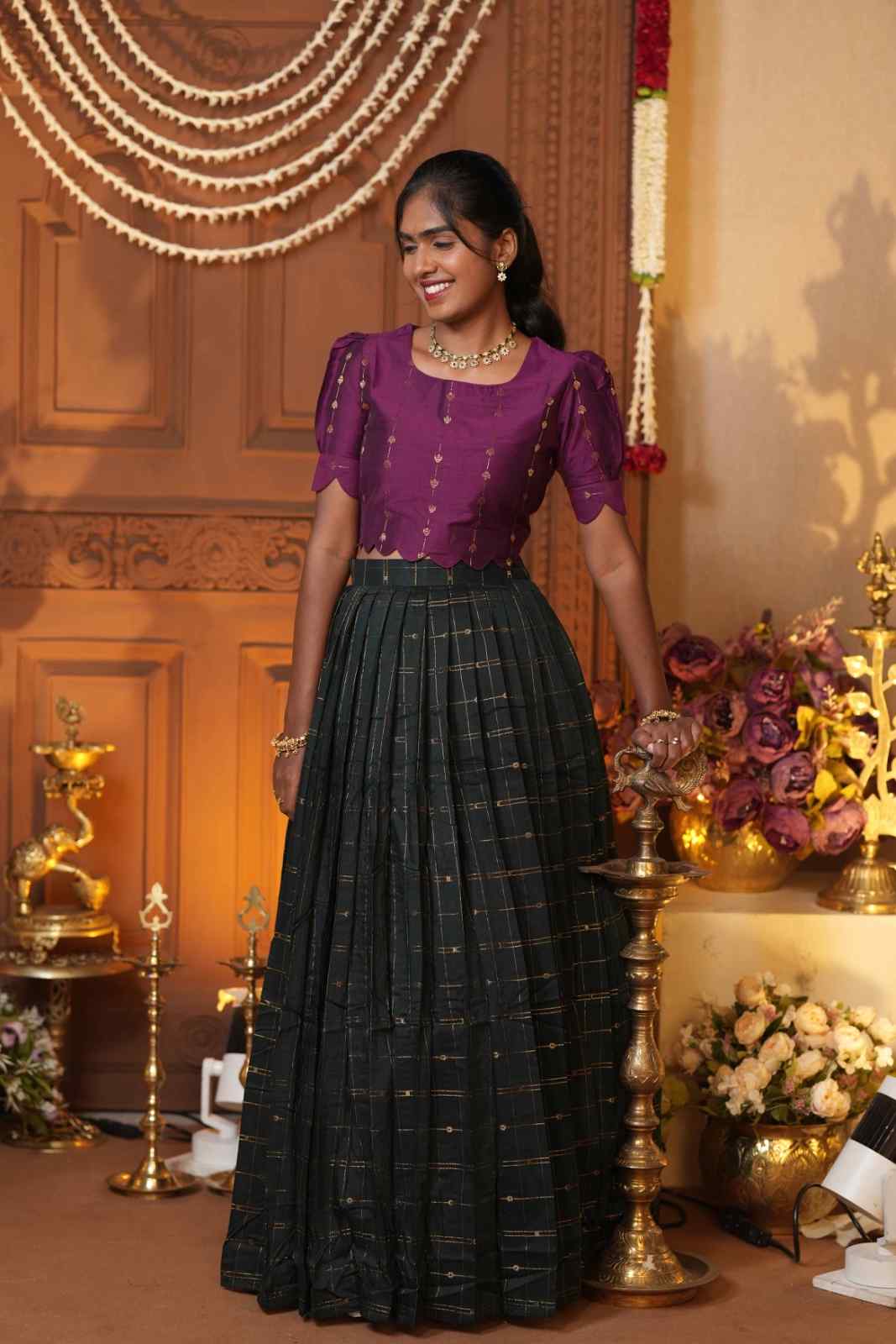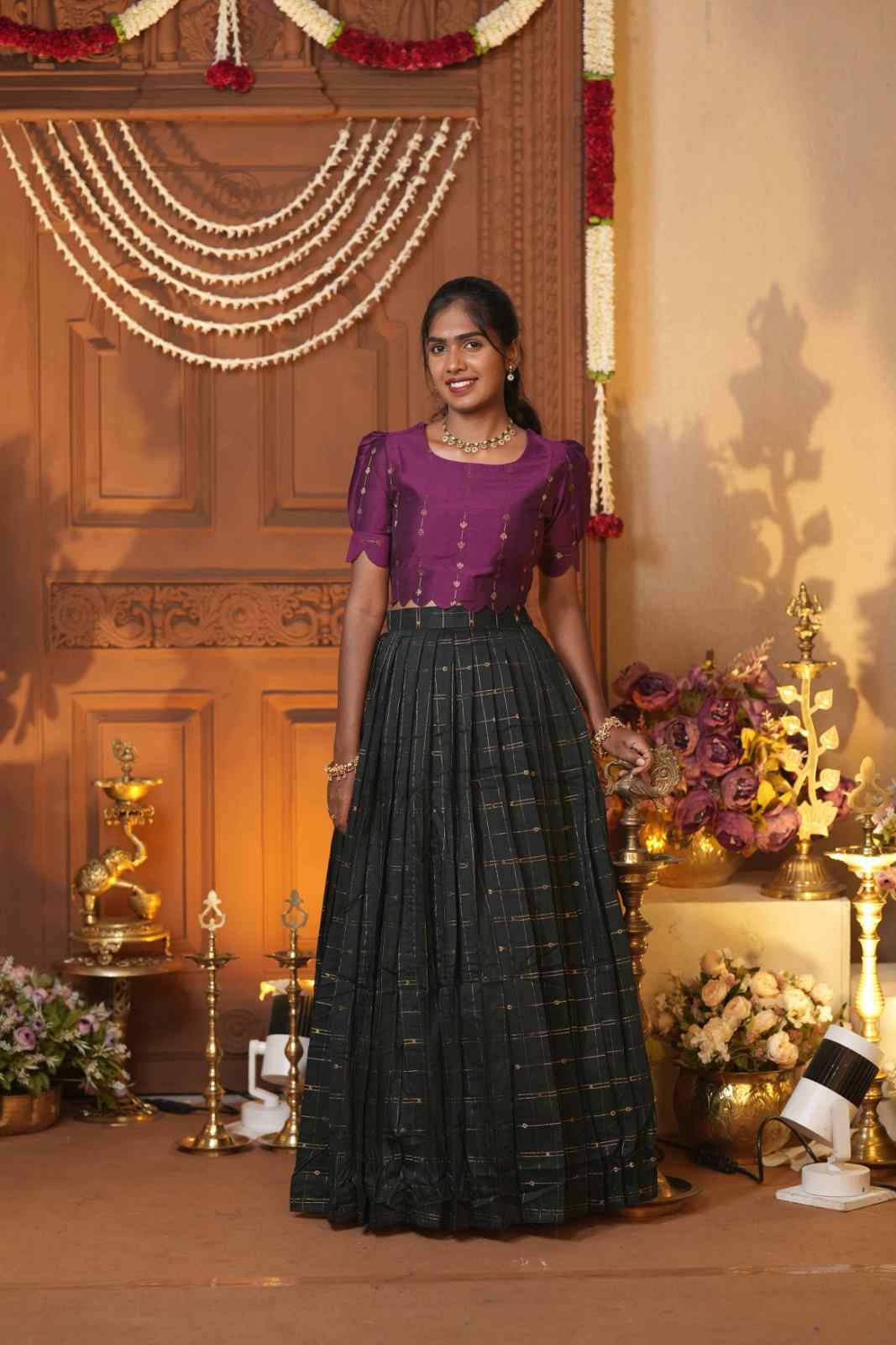 Expertly crafted with Milir , this stunning skirt and top set is the perfect addition to your wardrobe. Made from premium materials, these pieces offer exceptional comfort and style. The Thulir fabric also provides unique benefits, ensuring a perfect fit and long-lasting wear. Elevate your look with milir.