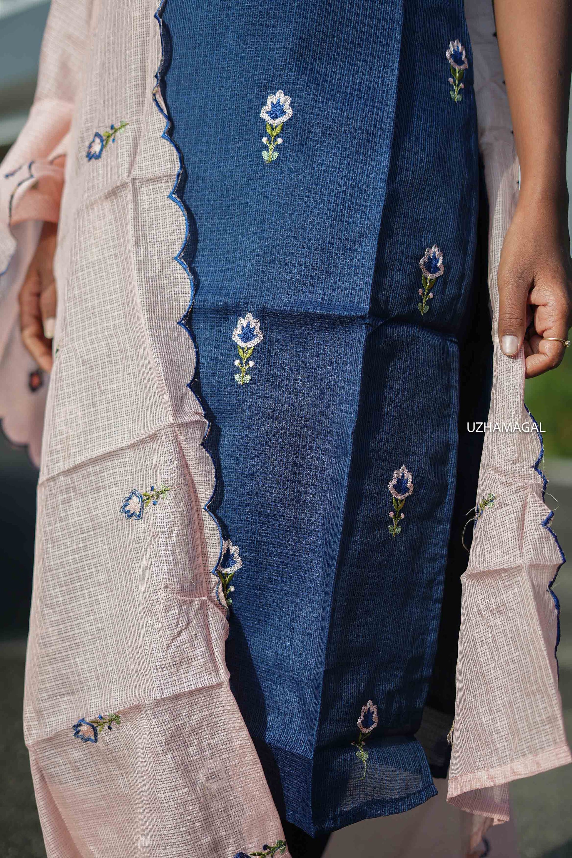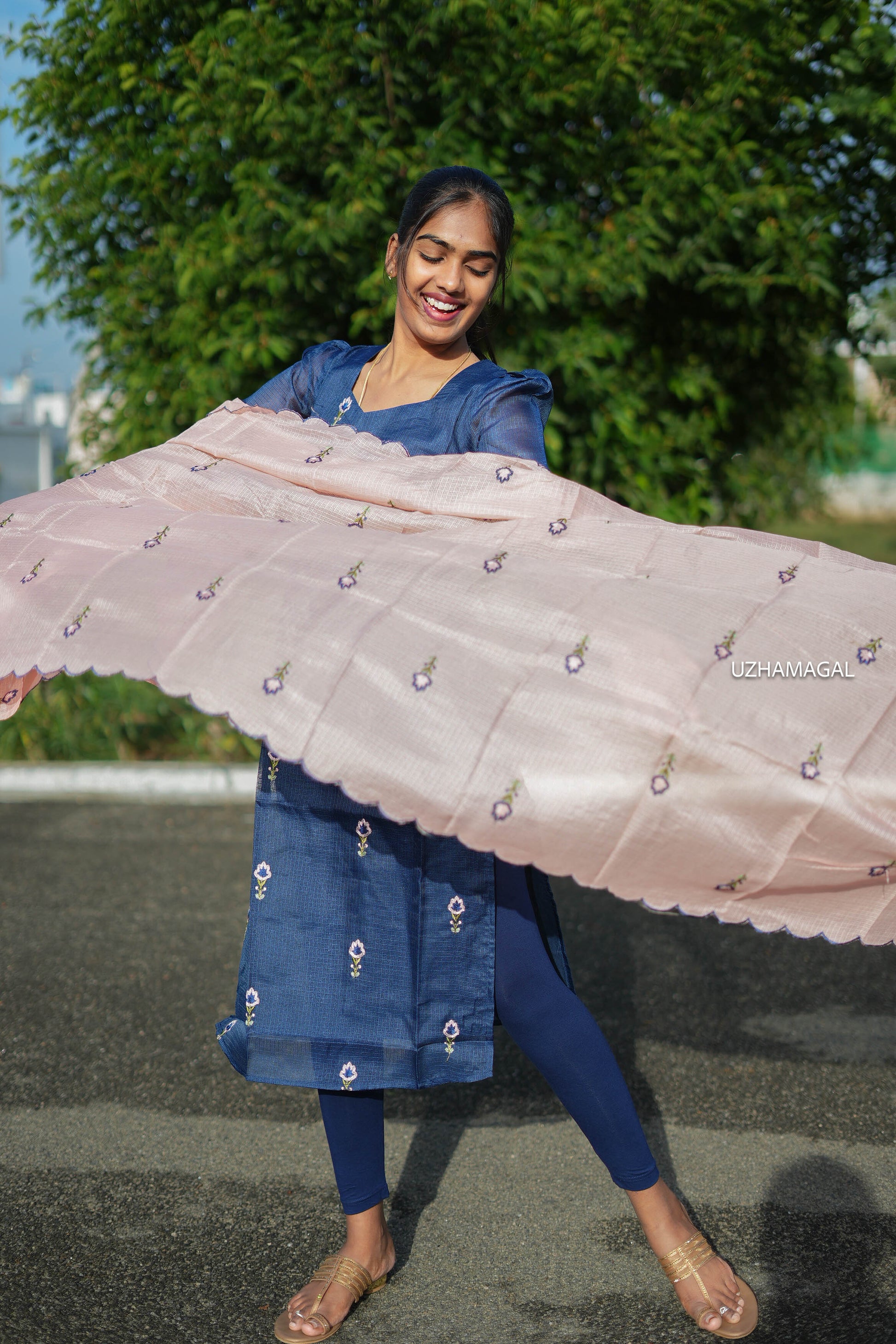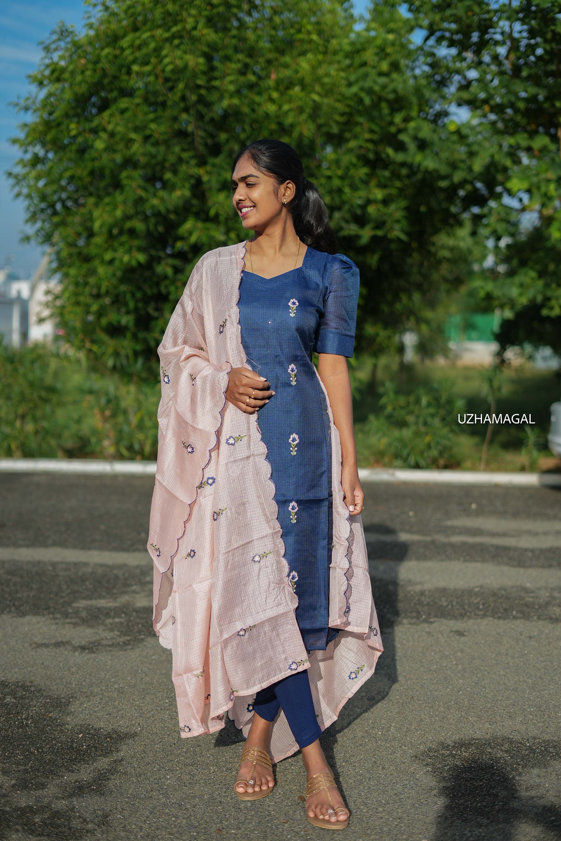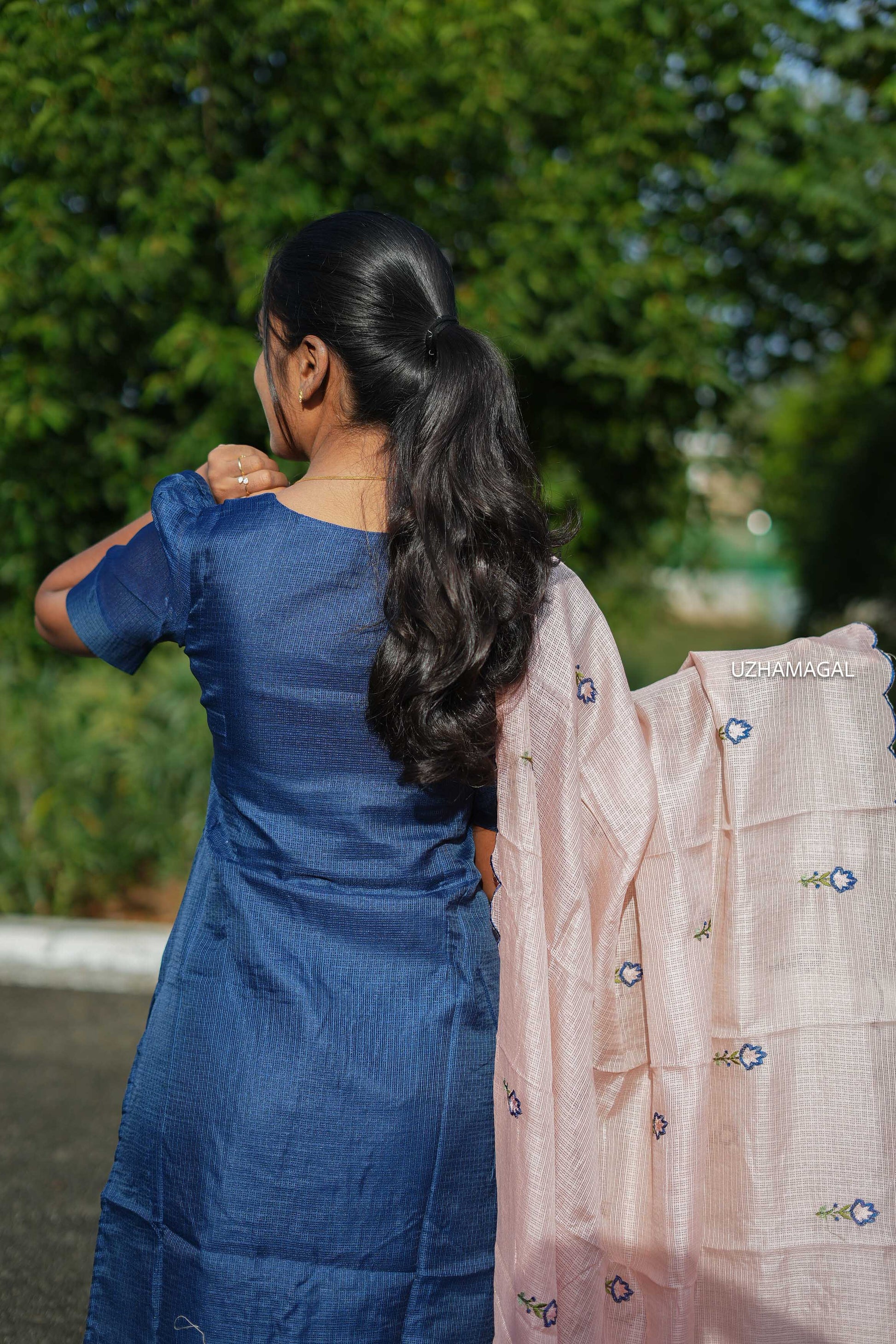 Freshen up your wardrobe with the Navy Elora kurti made from airy Kota fabric, featuring charming embroidery that adds a wink of elegance. Paired with a contrasting dupatta, this playful outfit bridges the gap between office chic and casual cool effortlessly. Comfortable and stylish, it’s designed to brighten your day wherever you wear it!
