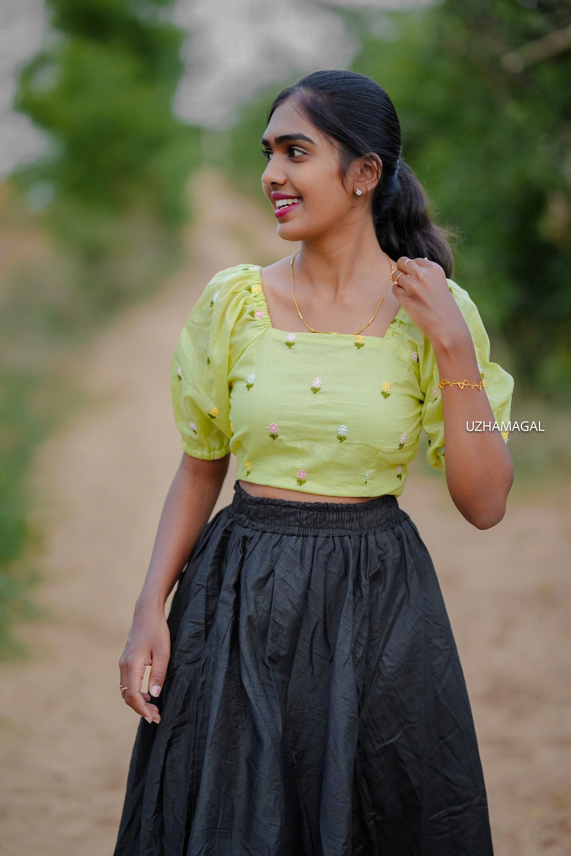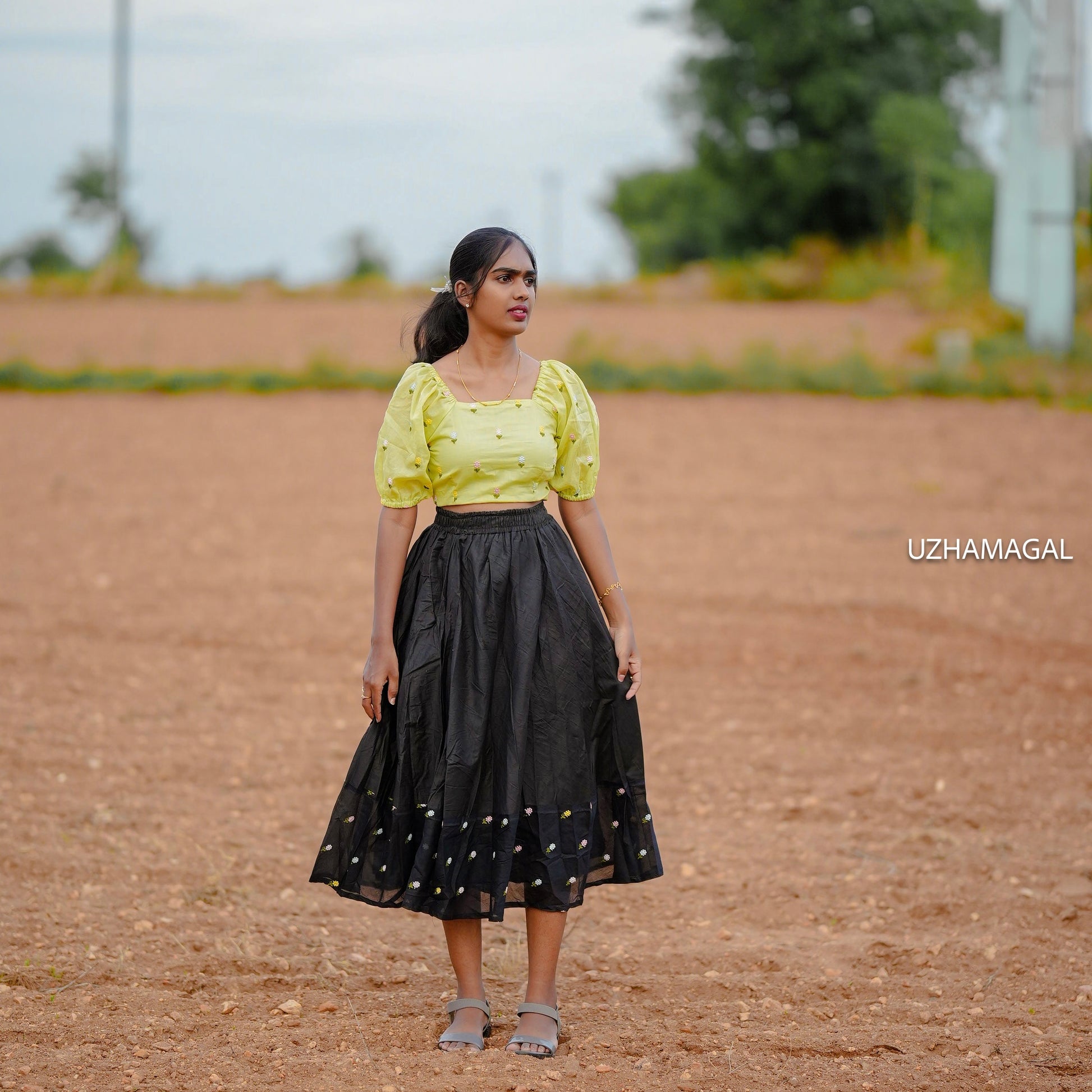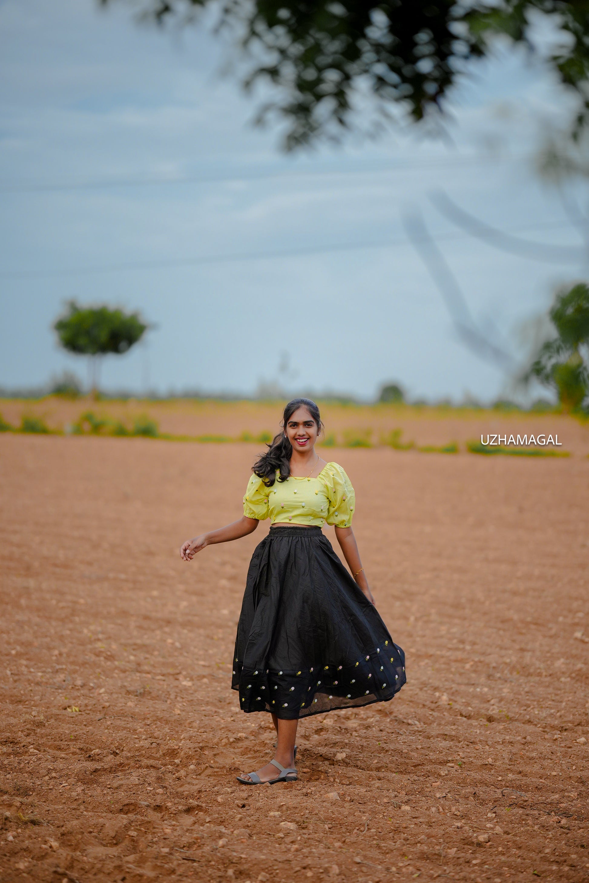 The Night Leaf Skirt Set, a beautifully crafted and designed for effortless evening elegance. Made from soft mulmul fabric with delicate embroidery, this set features a combination of lime green and black top and skirt that blends boldness with grace. Perfect for a gathering , dinner, or cultural event, this set brings just the right balance of charm and statement style.