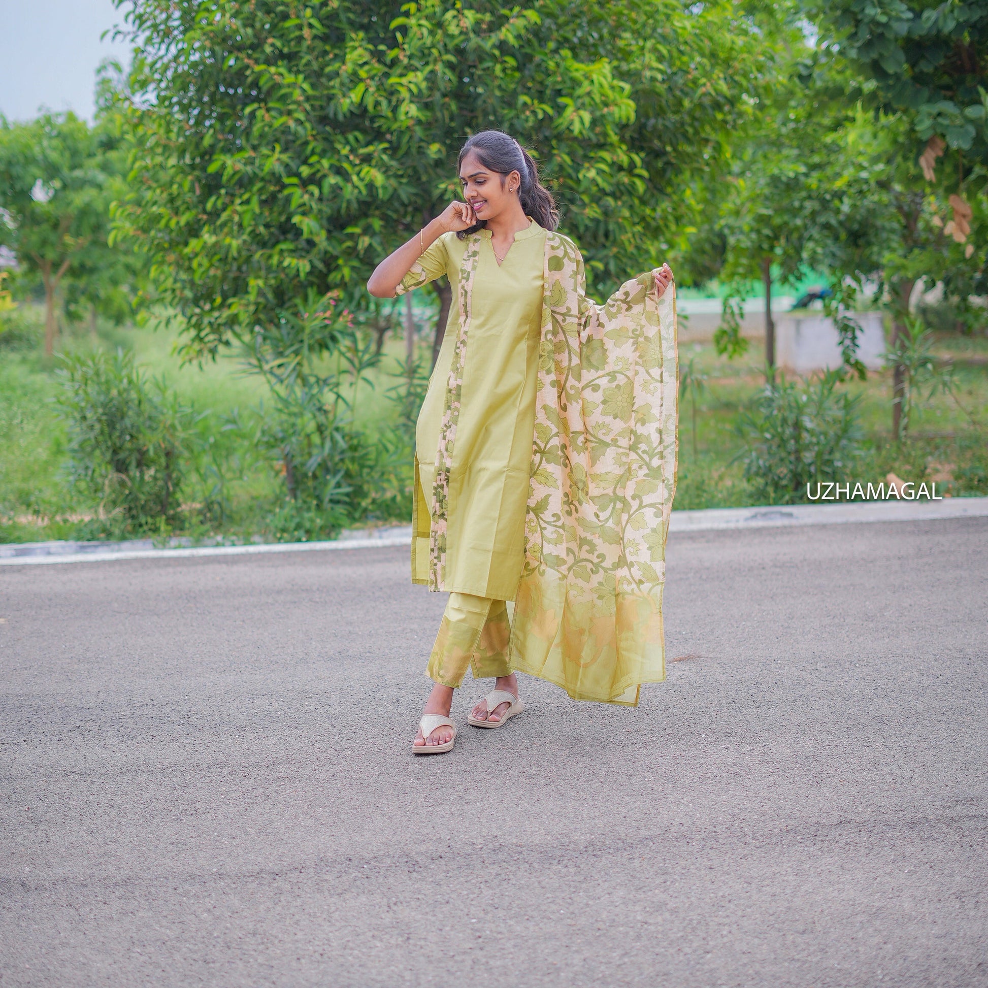 Olive Bloom Kurti Set