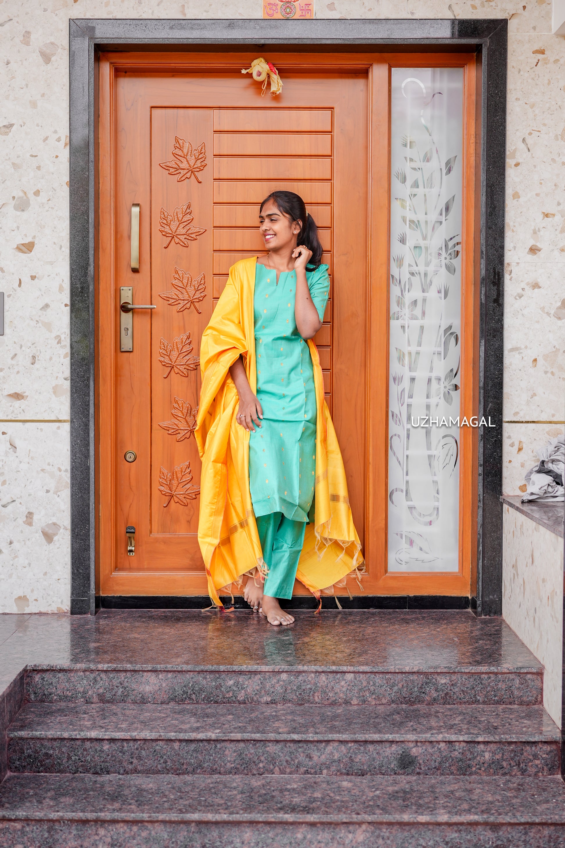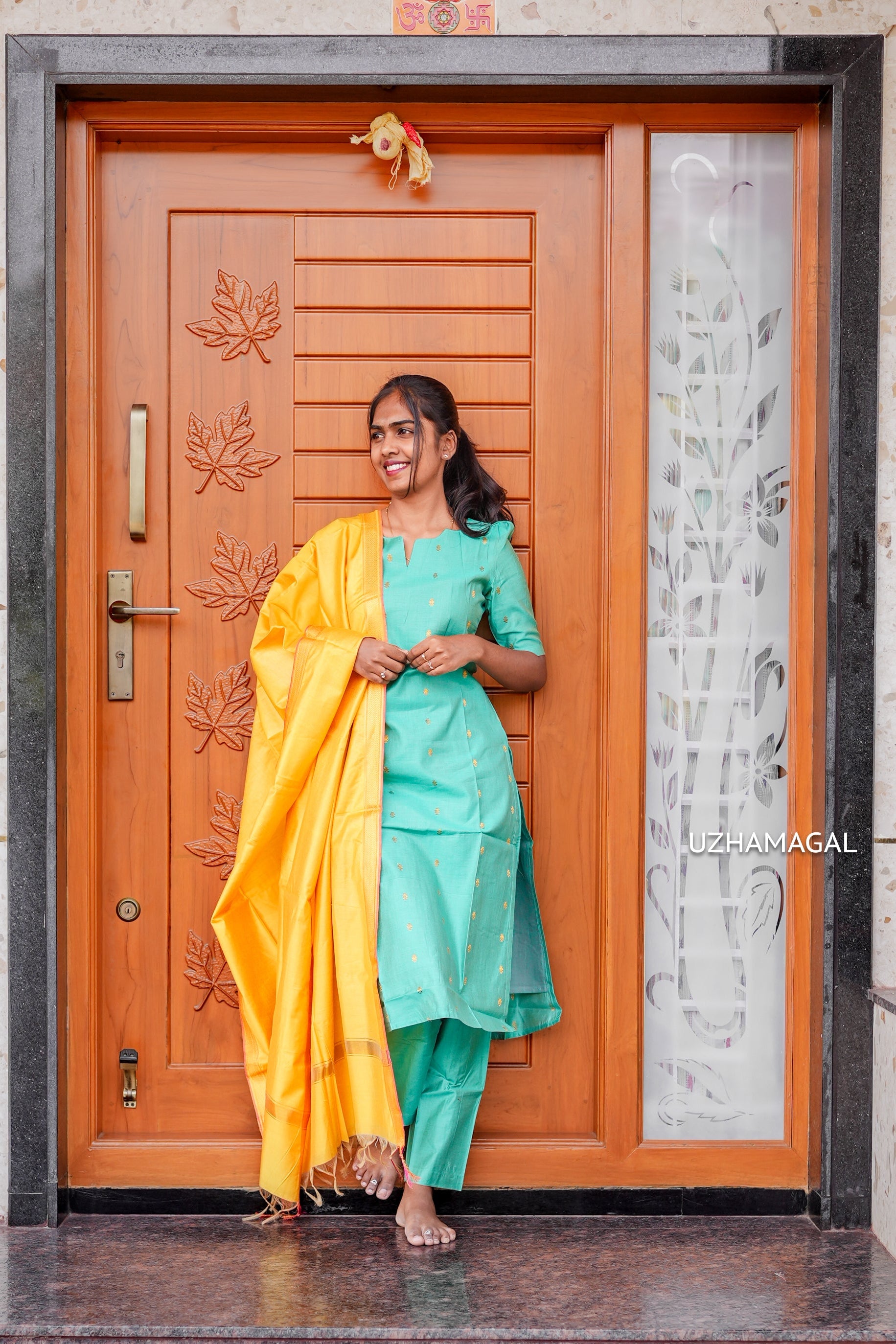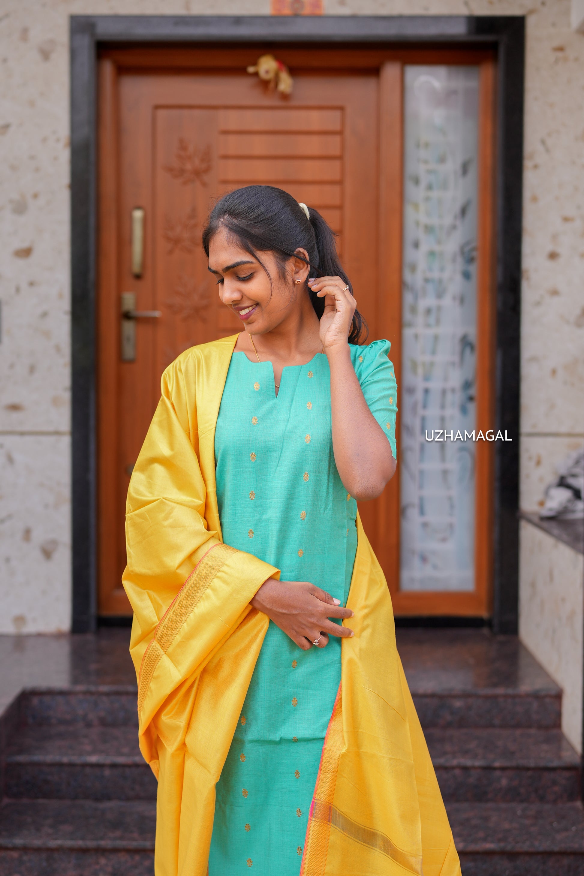 Color : Sea Green with Mustard Yellow dupatta