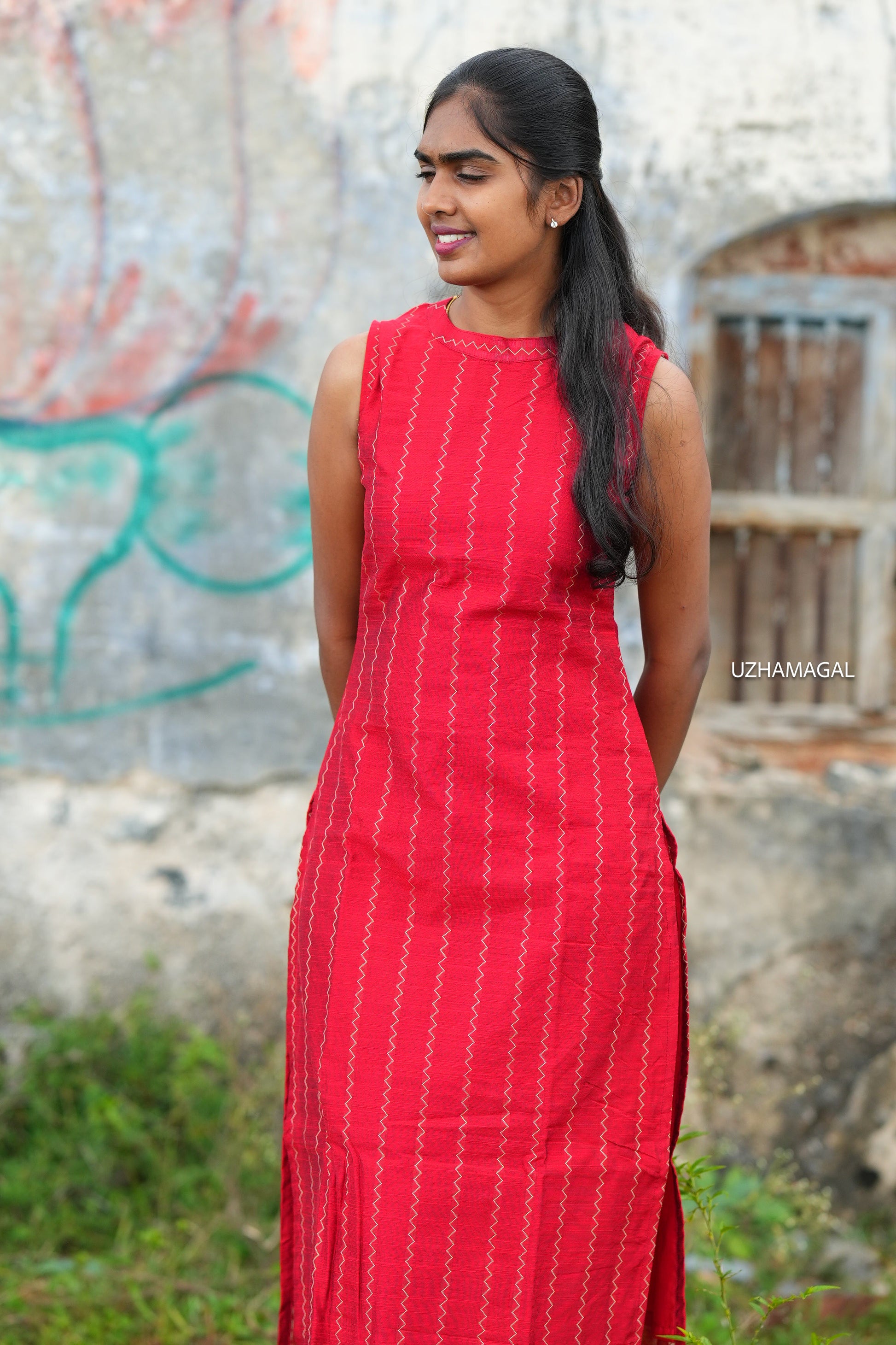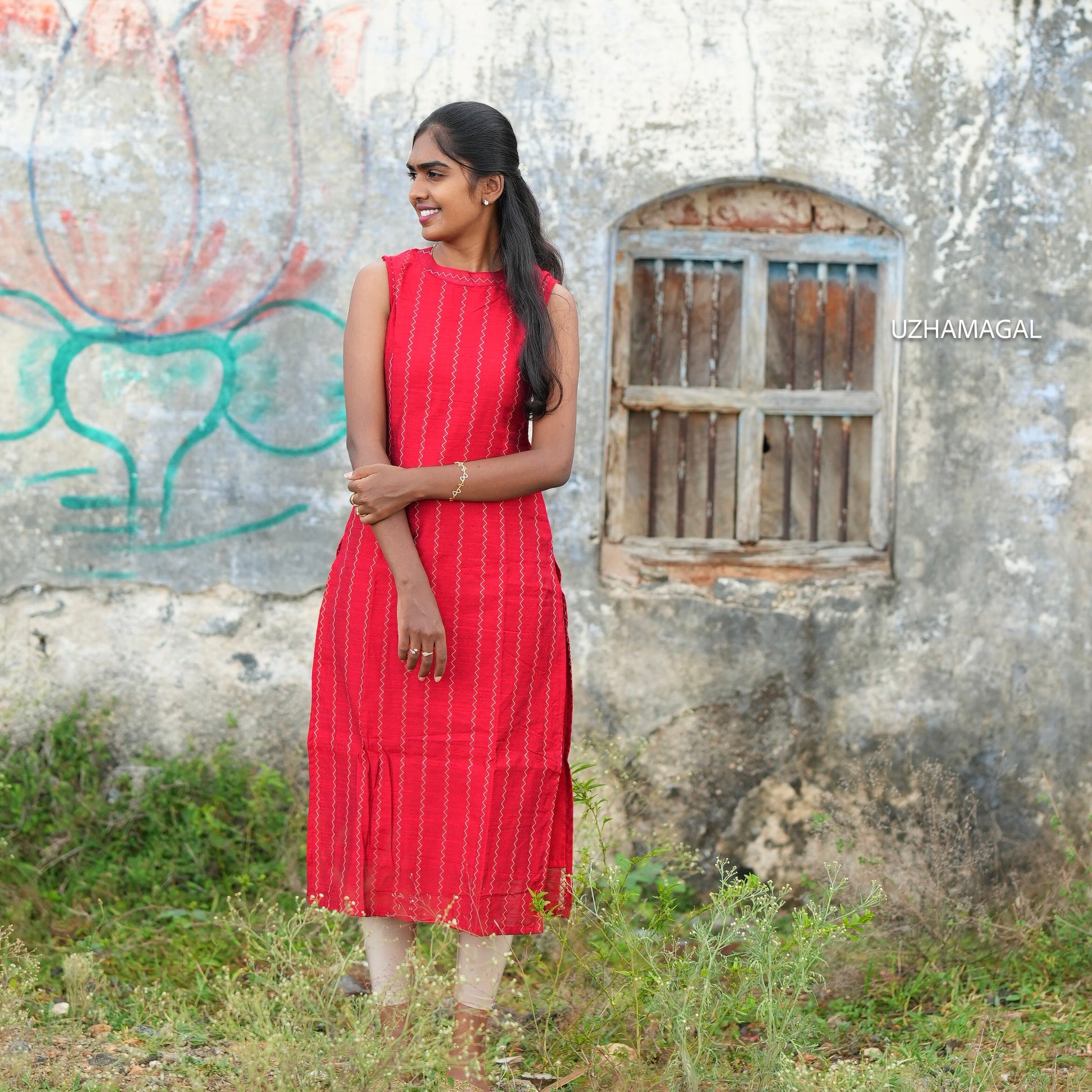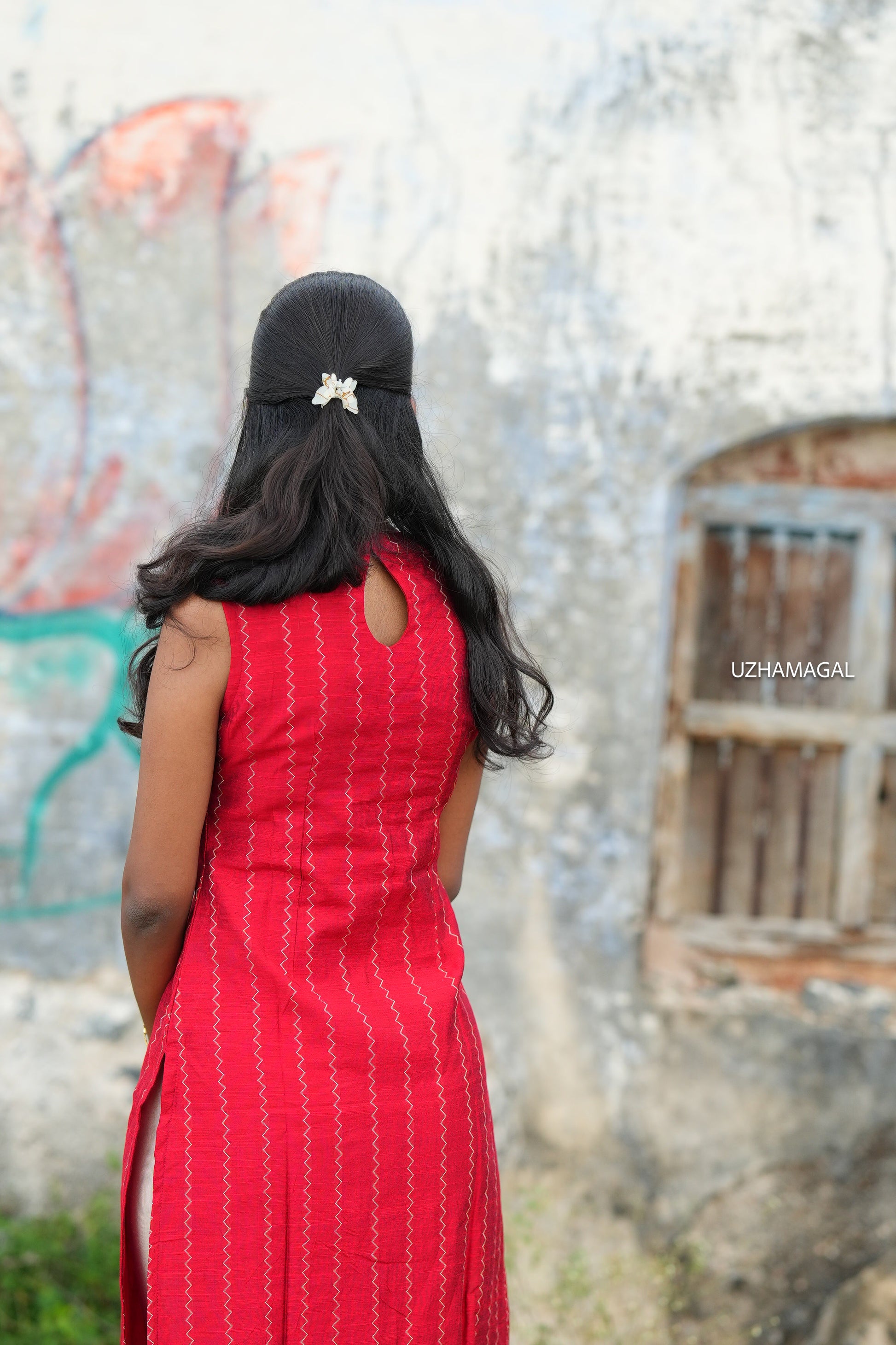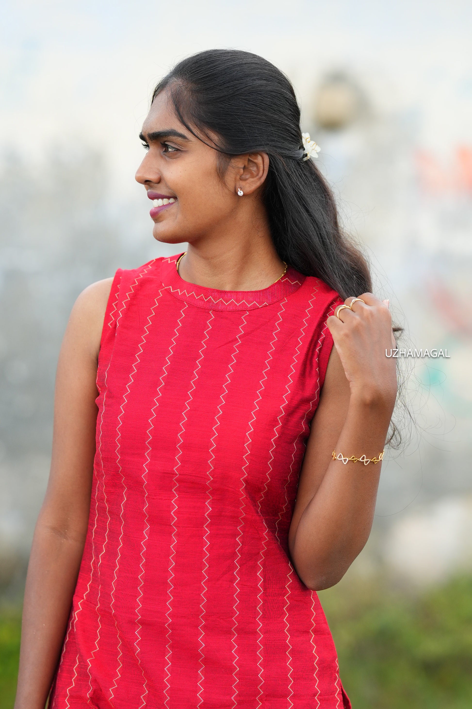 The Rathinam Kurti is crafted to add richness and grace to your everyday wardrobe. the red hue reflects strength and poise, while the raw silk cotton fabric lends a gentle sheen and structure. Fully lined with breathable cotton, this kurti ensures all day comfort. Rathinam is made for moments that call for quiet confidence.