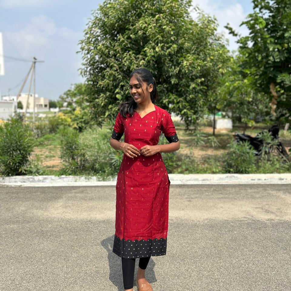 Get ready to look effortlessly chic with our Red Velvet Kurti! Perfect for casual wear, this elegant piece is also incredibly comfortable and will keep you stylish all day long. Upgrade your wardrobe with this must-have kurti now!