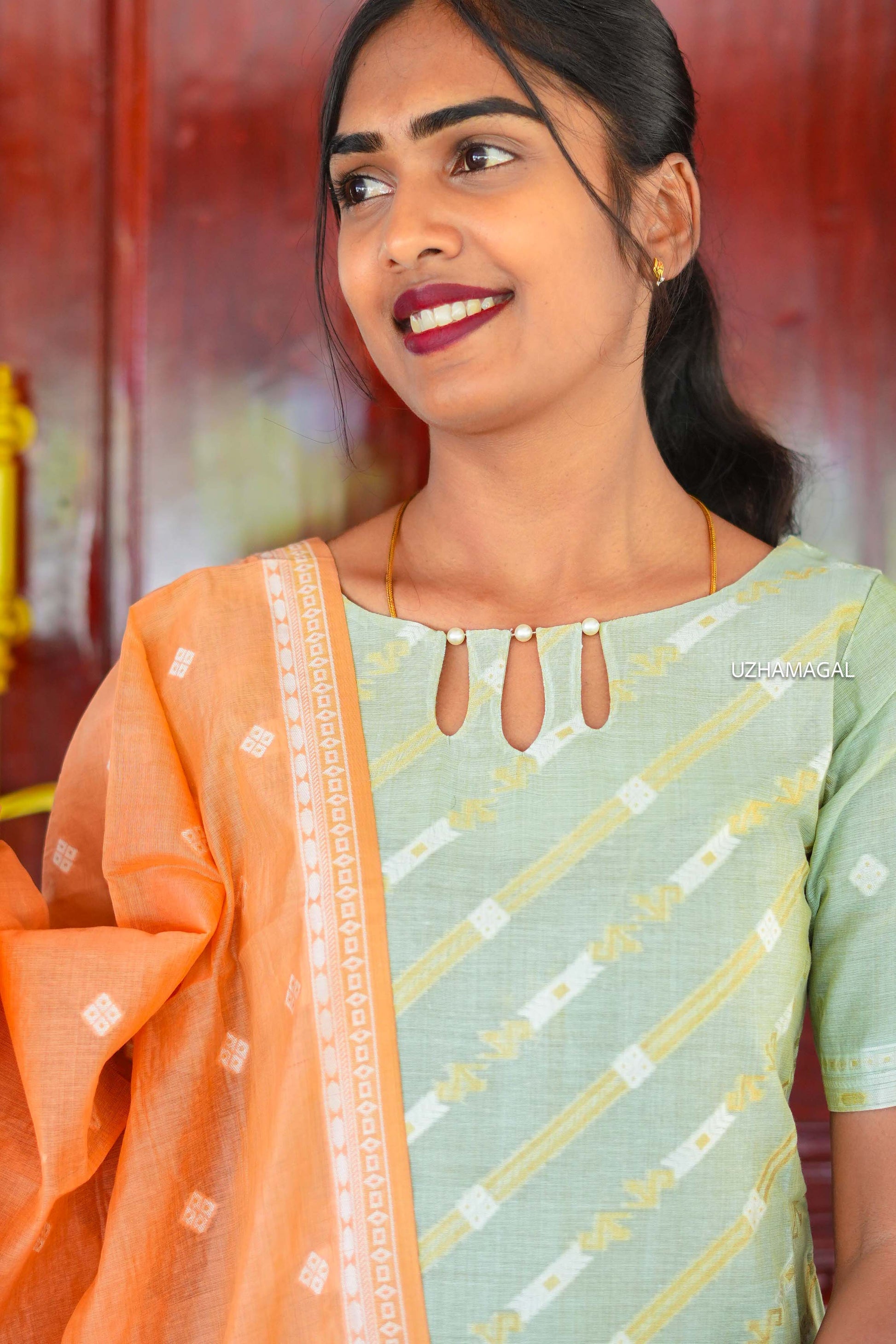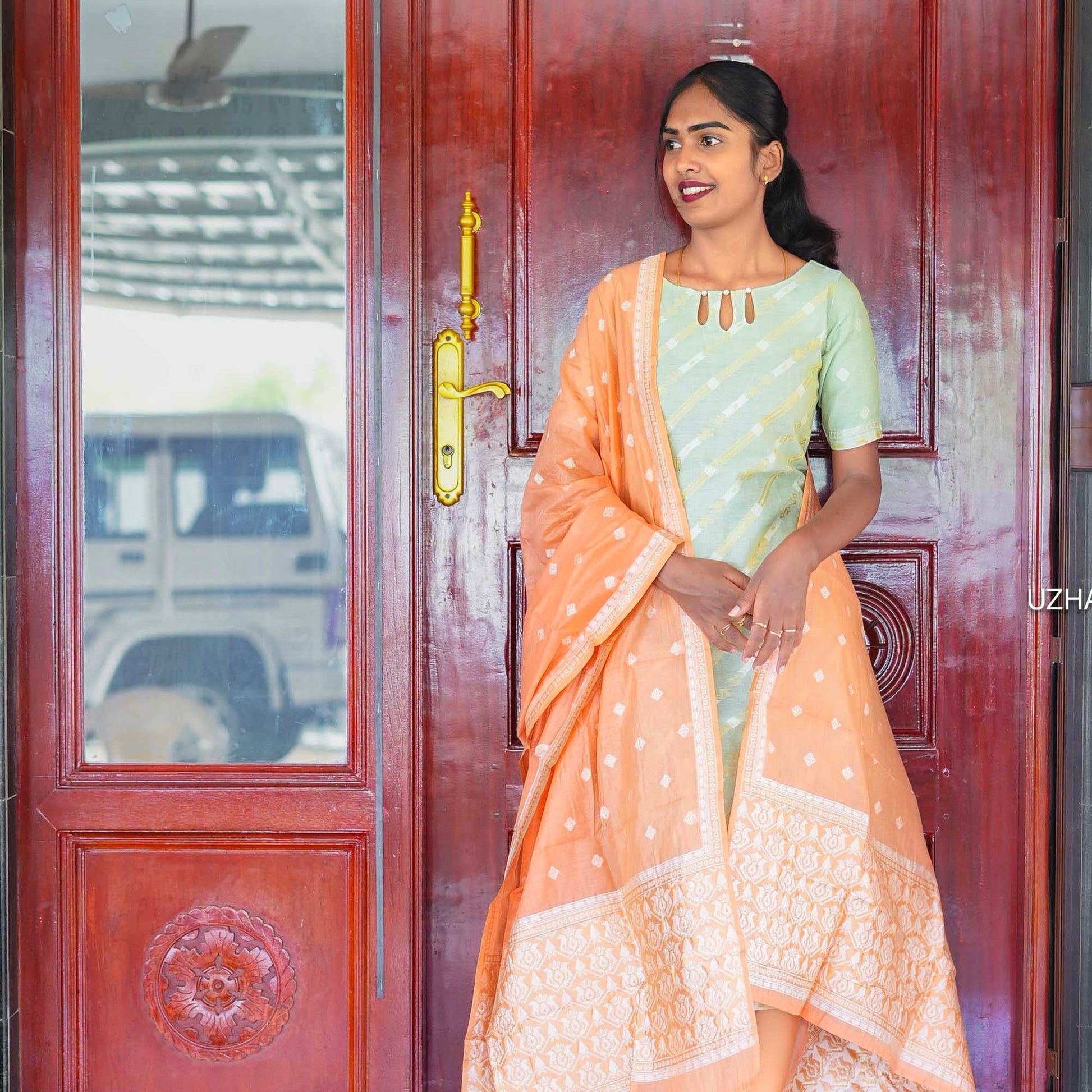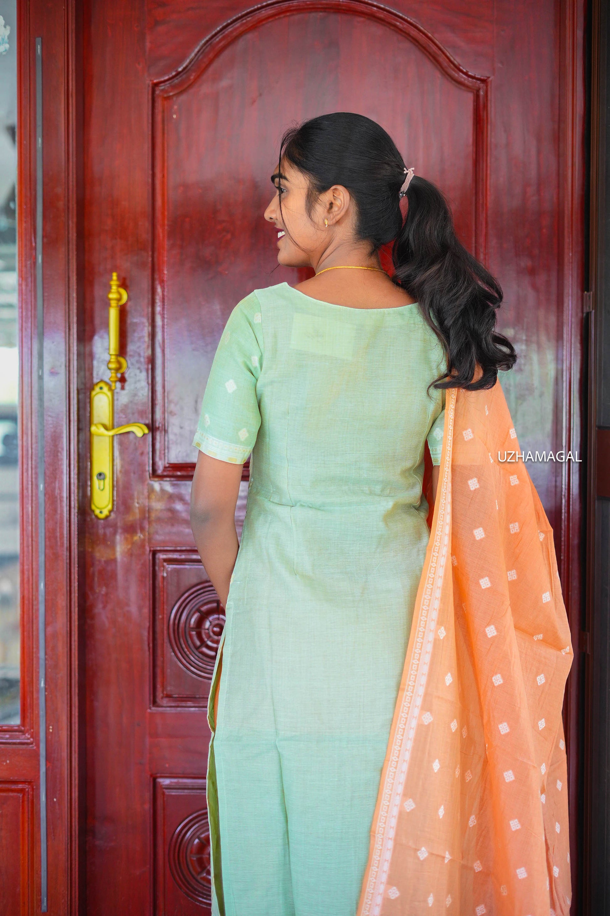 Step into your day with a splash of joy in this light green kurti paired with a bright orange dupatta. Perfect for office days or casual outings, this playful combo keeps you comfortable while adding a cheerful twist to your daily wardrobe. Ready to bloom with every wear!