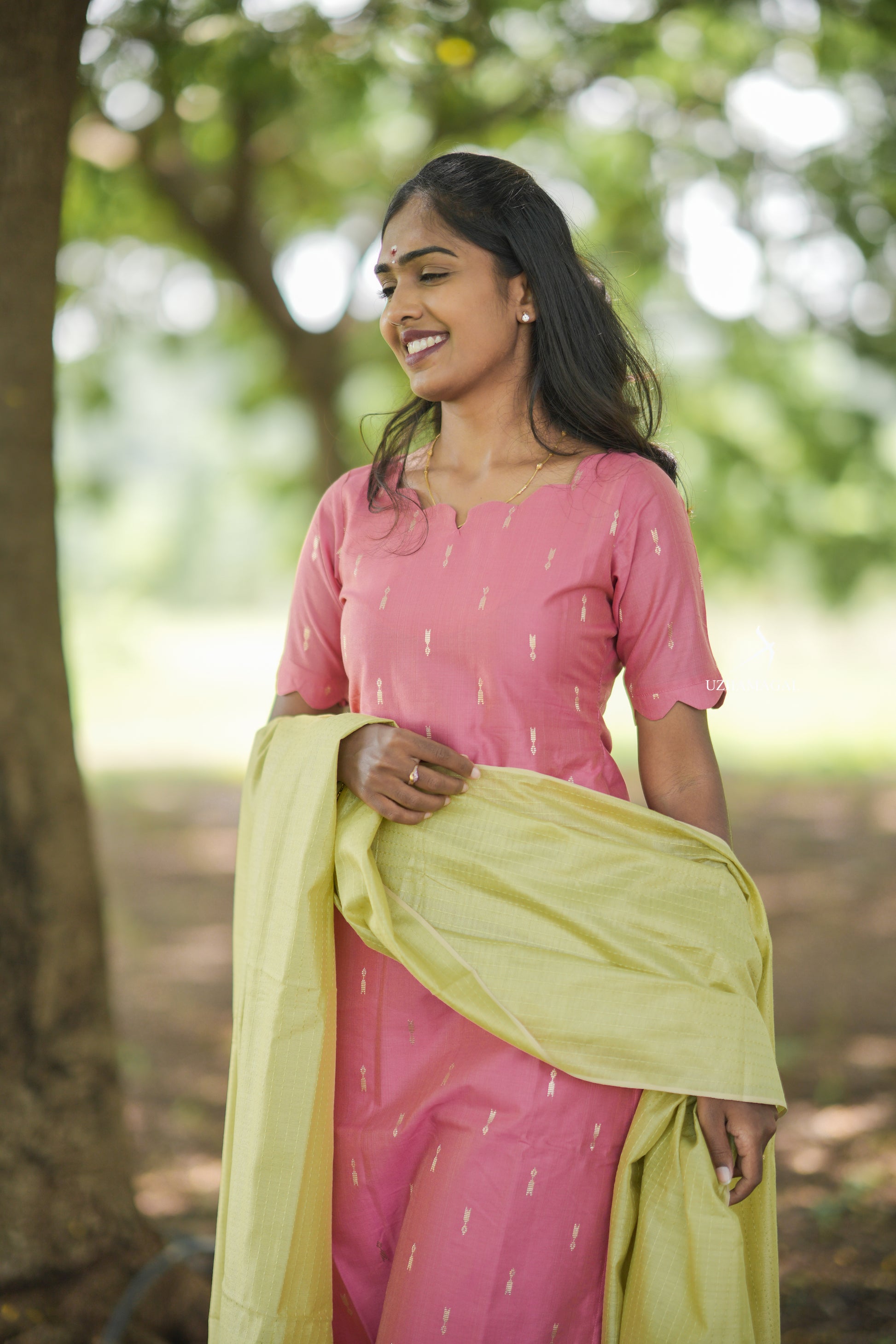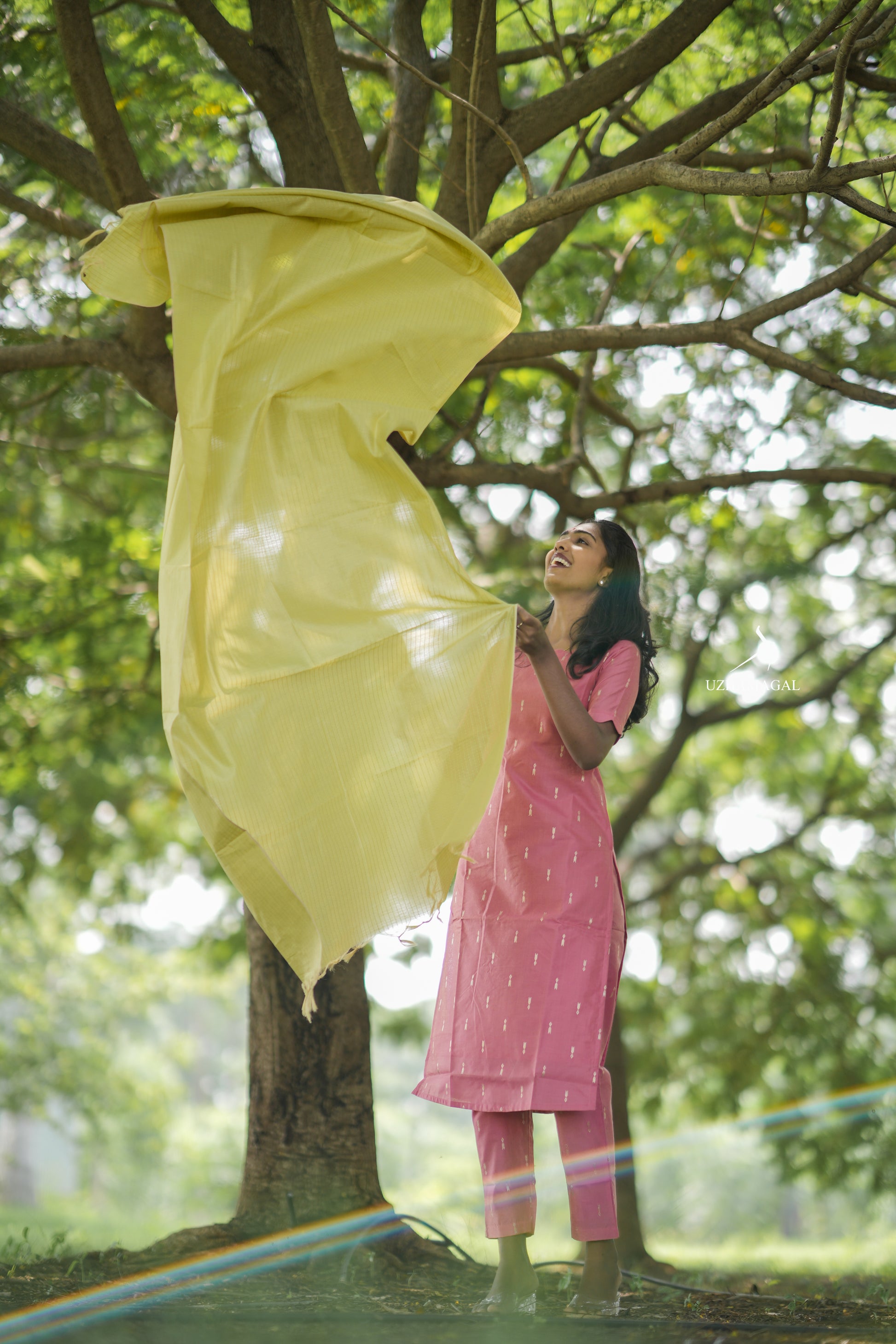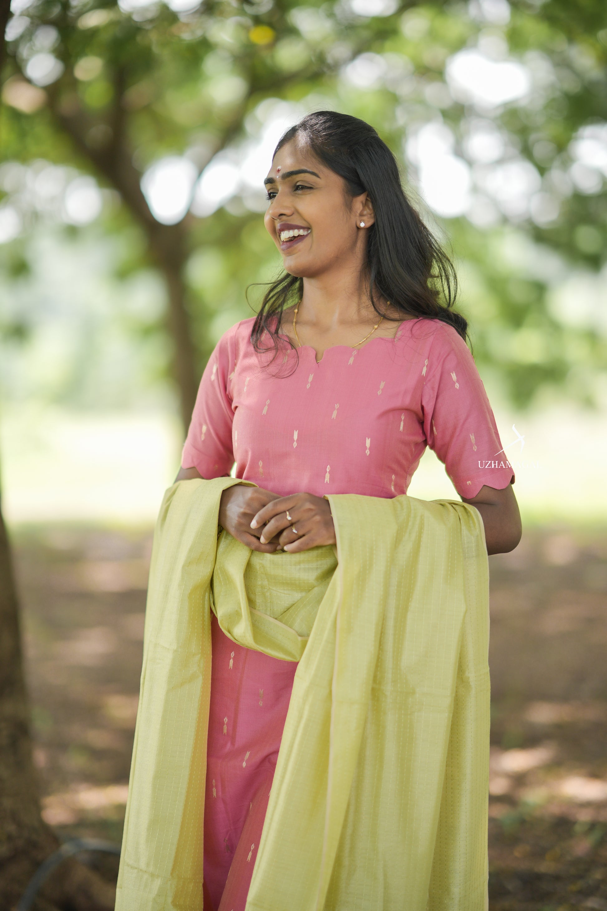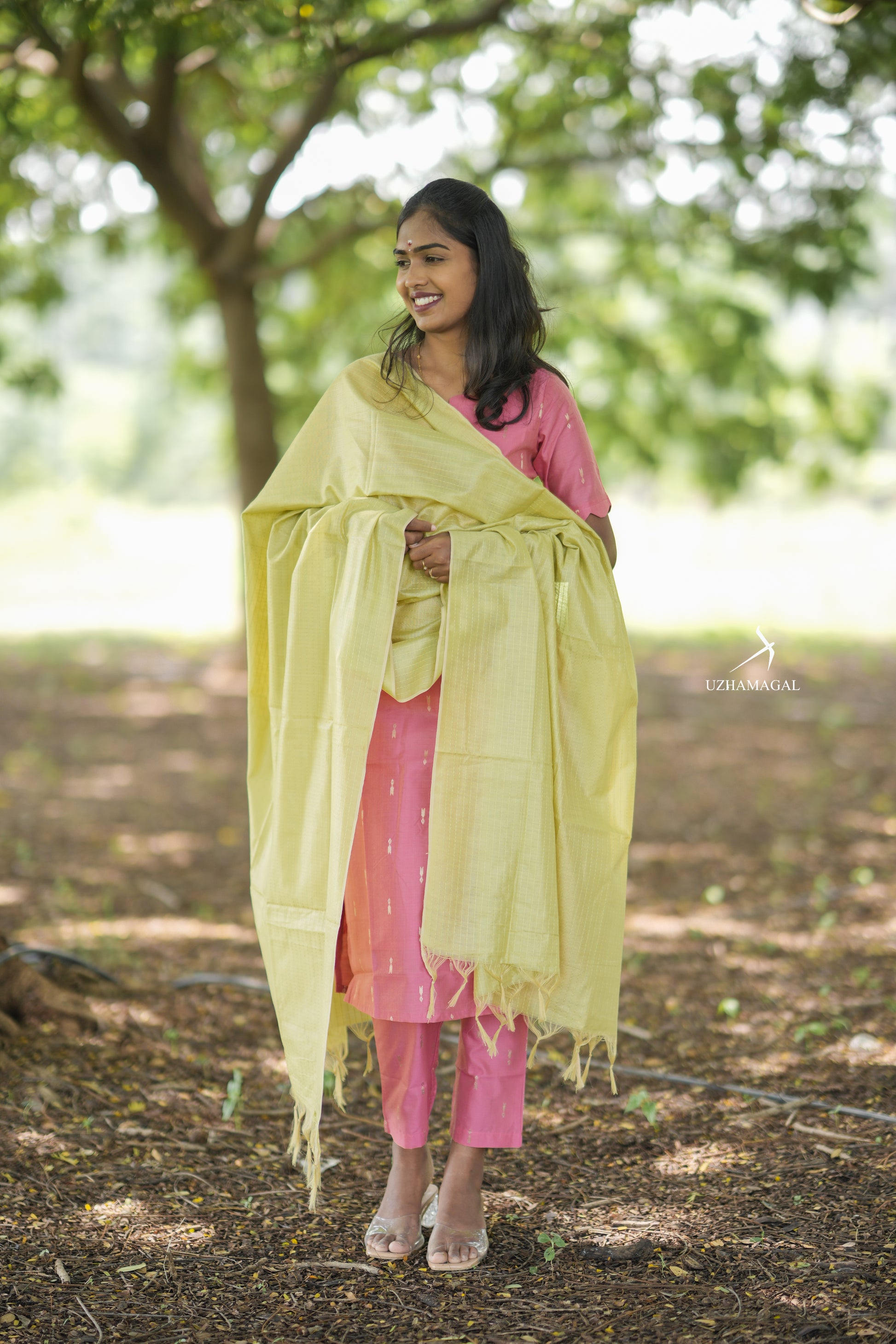 Experience elegance with our Saffron Set. This kurti set is made with exquisite tussar fabric and features a beautiful contrast design. Perfect for any occasion, this set will make you stand out with its unique blend of style and sophistication.
