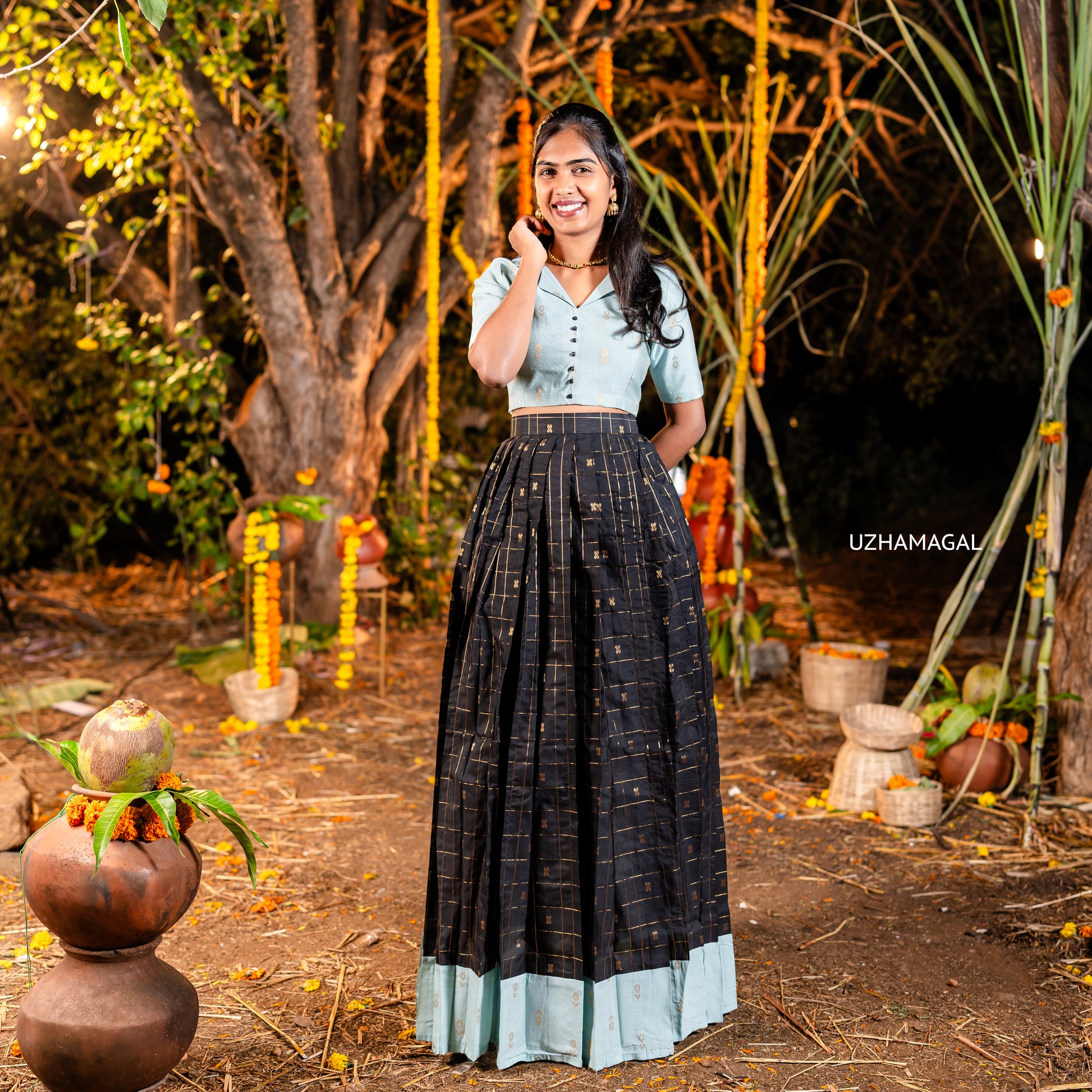 Introducing Sangamitra, an exquisite ethnic ensemble that celebrates timeless elegance. This beautifully coordinated skirt and top set features intricate gold butta detailing against a stunning, unique color palette that commands attention. Perfect for festivals, celebrations, and special occasions, this piece brings together traditional craftsmanship with contemporary style. Whether you're attending a wedding, cultural gathering, or festive celebration,