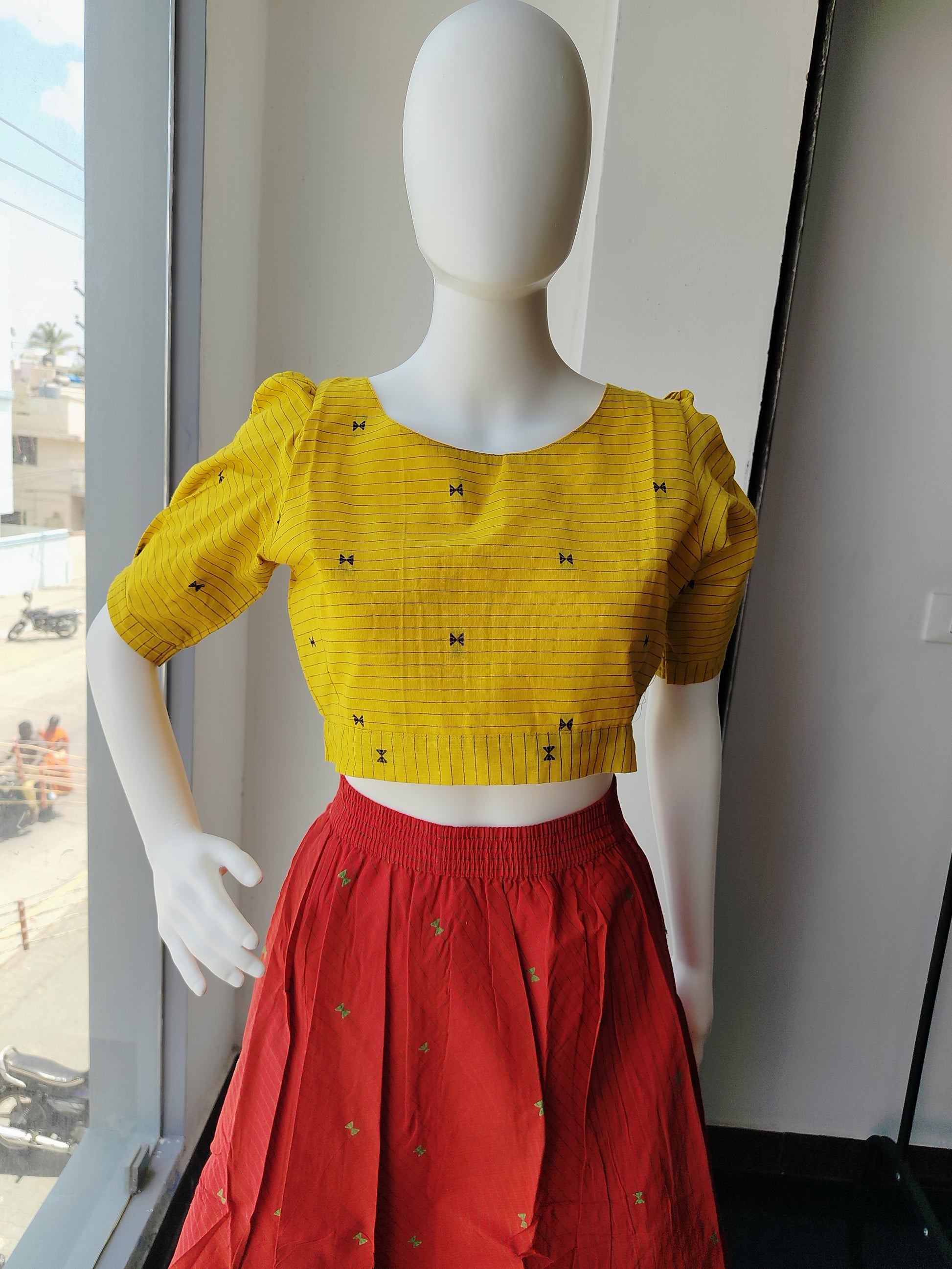 Madhuvika skirt top is your trusted travel companion for any adventure. Designed with the wanderer in mind, this piece offers the perfect balance of style and practicality. The soft, breathable fabric keeps you comfortable through long days of exploration, while the versatile silhouette pairs effortlessly with your existing travel pieces!