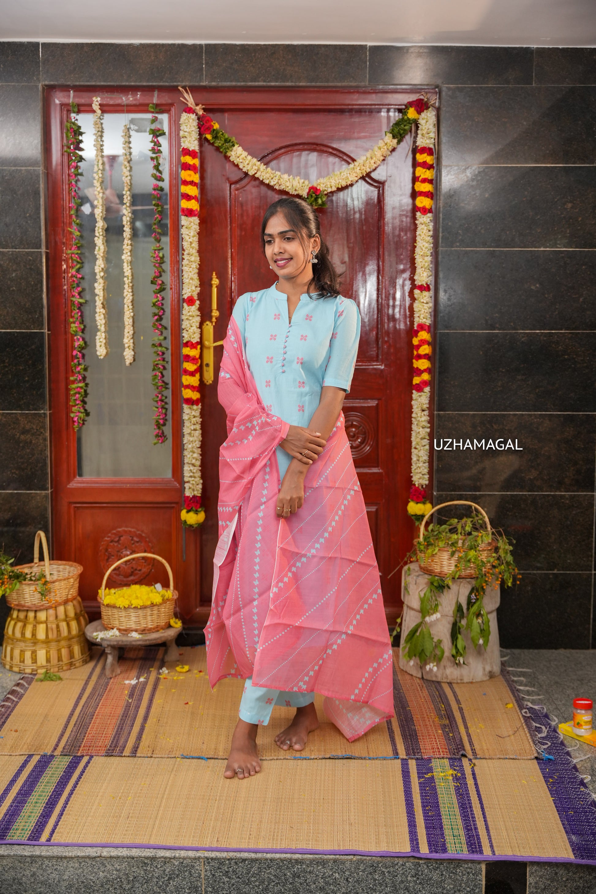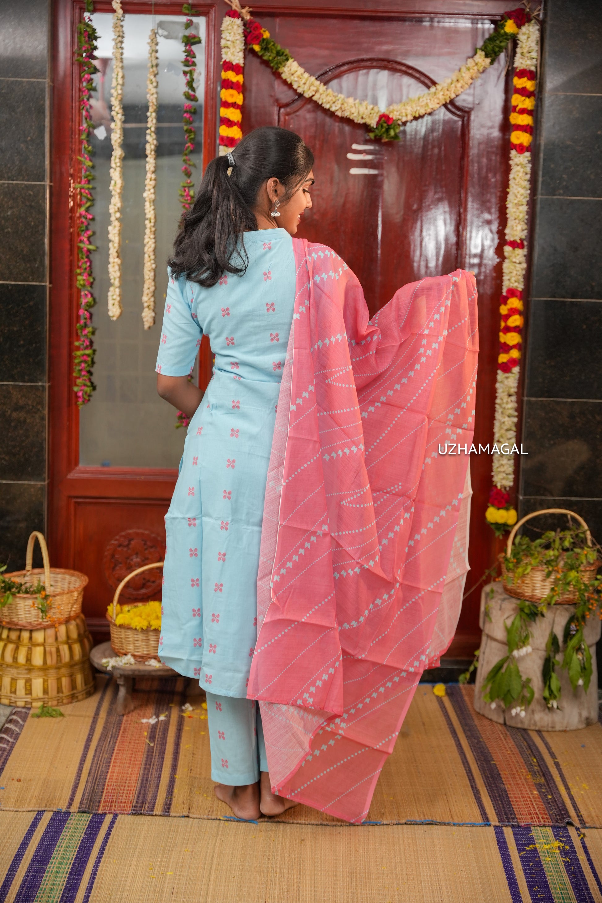 Experience effortless elegance with Sky Sonata, a handwoven cotton kurti set designed for versatile wear. The soft, breathable fabric drapes beautifully, making it ideal for daily activities and office settings. Paired with a charming pink dupatta, this blue ensemble offers a sophisticated look that transitions seamlessly from work to casual outings.