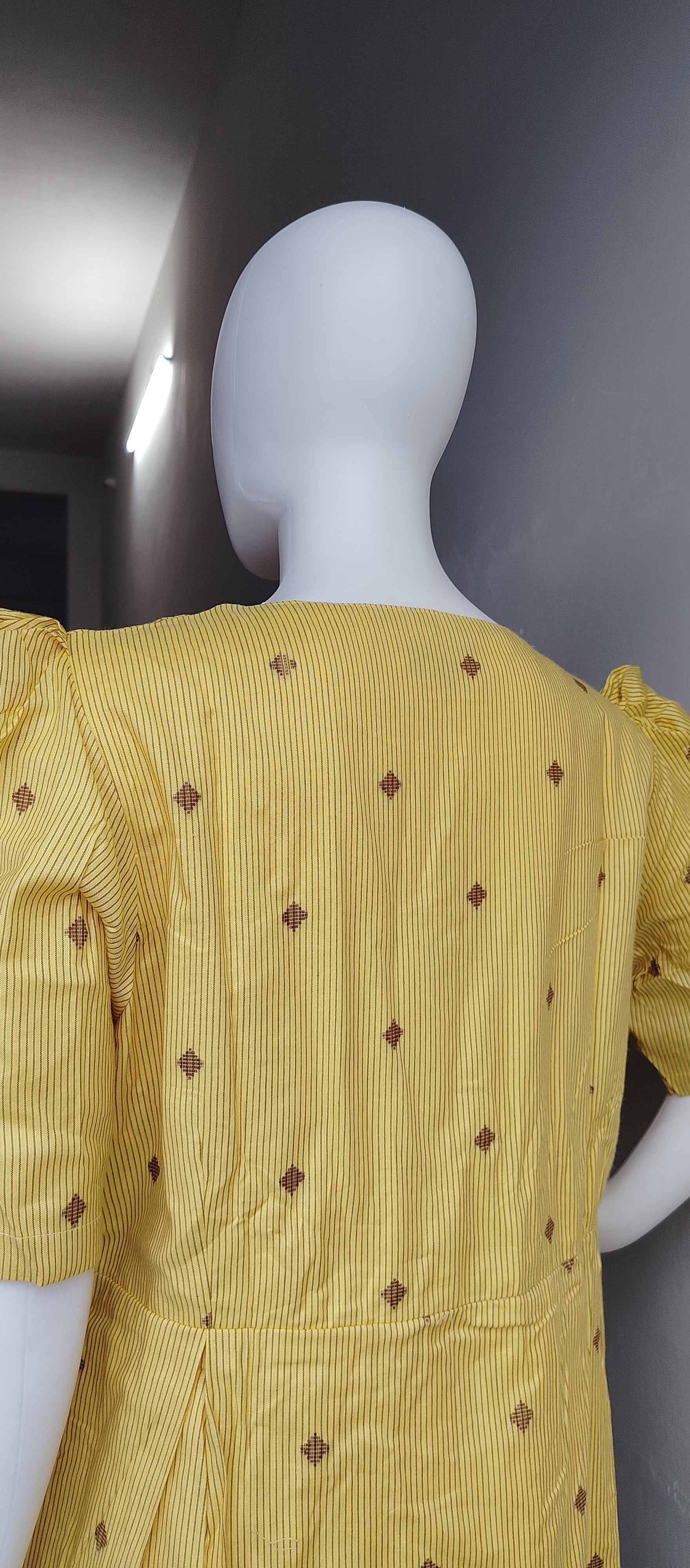 Discover the charm of the Tamara Butta, a radiant yellow maxi dress featuring delicate butta embroidery that honors traditional artistry. This versatile piece drapes beautifully, offering both comfort and elegance for any occasion.