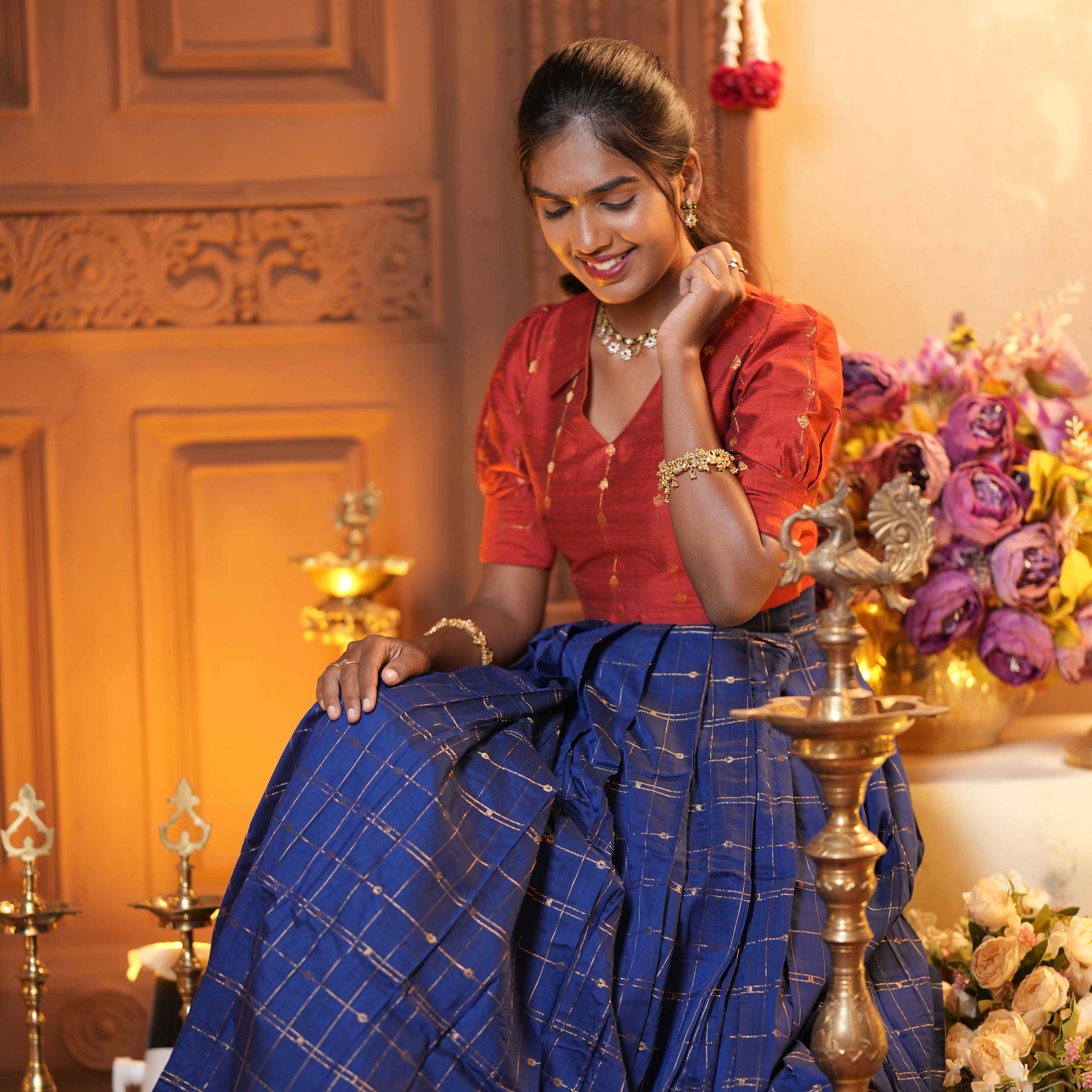 Expertly crafted with Thulir fabric, this stunning skirt and top set is the perfect addition to your wardrobe. Made from premium materials, these pieces offer exceptional comfort and style. The Thulir fabric also provides unique benefits, ensuring a perfect fit and long-lasting wear. Elevate your look with Thulir.
