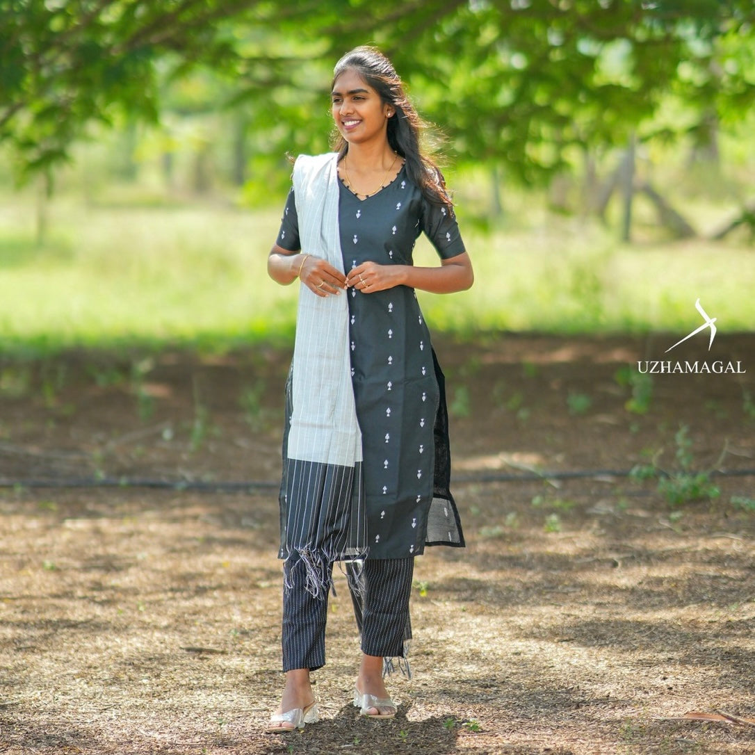 Step into the office with quiet confidence in this beautifully designed back kurti set. The rich black fabric offers a polished, professional appearance that works seamlessly across your workday, from morning meetings to evening commitments!