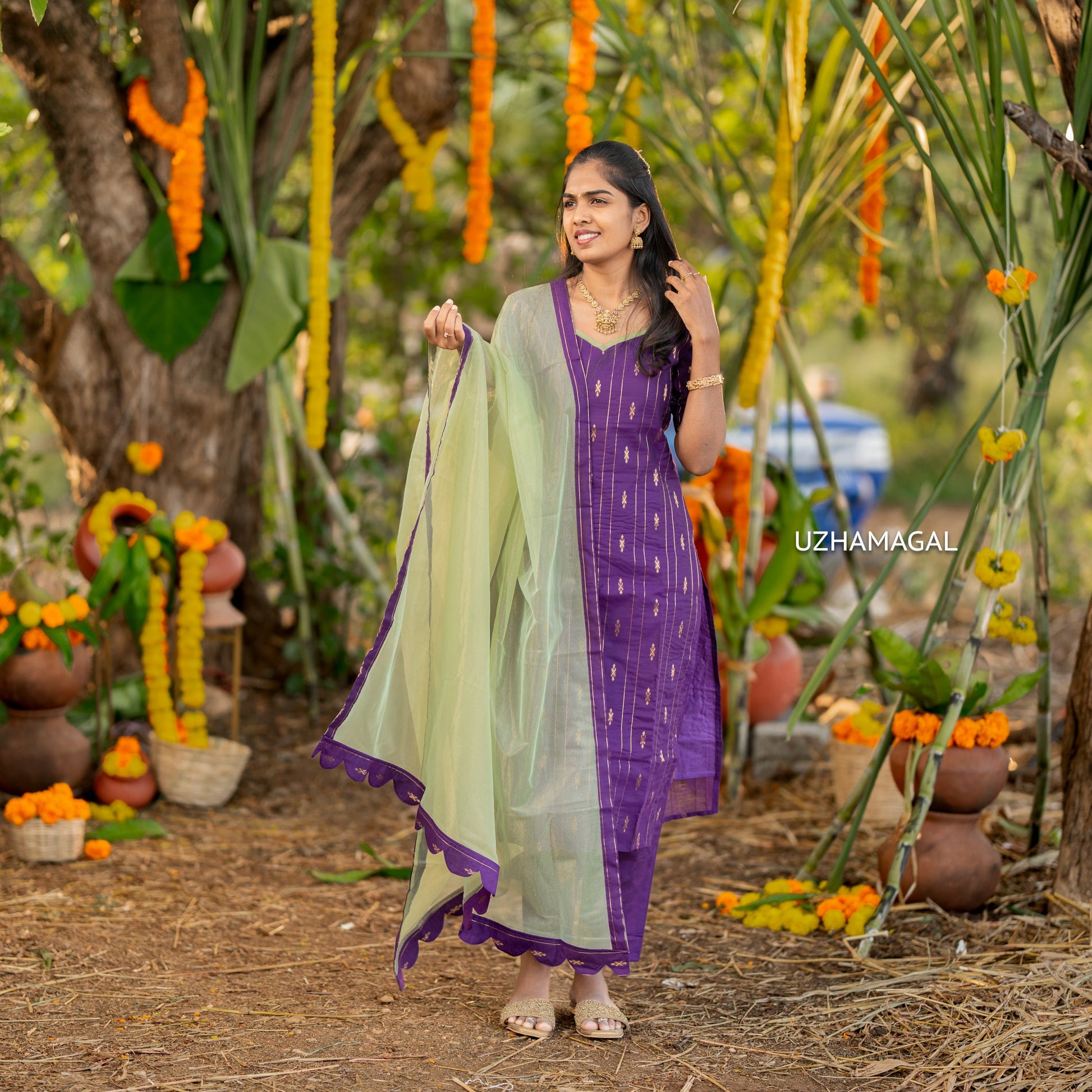 Experience the magic of traditional elegance with the Vasuki ethnic kurti set. This exquisite ensemble features a graceful purple kurti complemented by a soft light green dupatta, creating a captivating visual harmony. Perfect for weddings, festivals, or special occasions, this kurti set lets you express your cultural pride with confidence.Ā