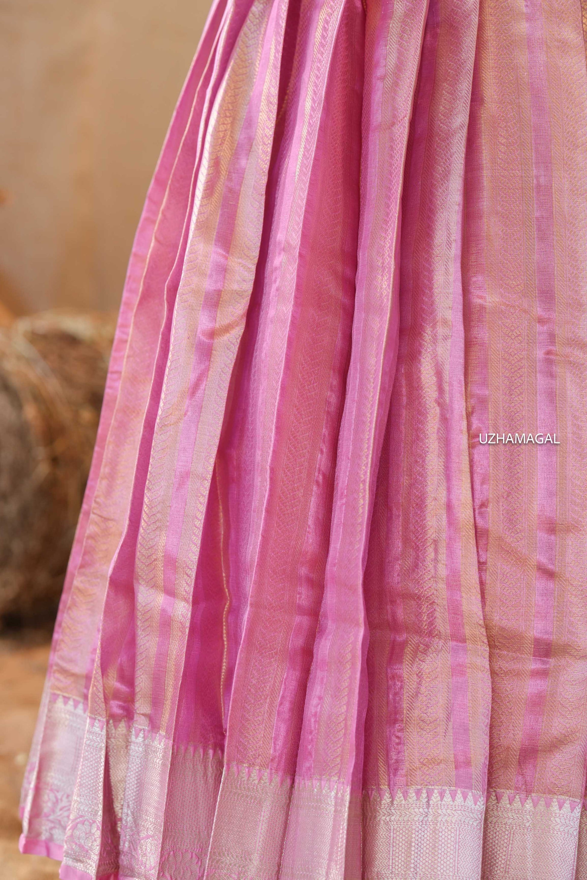 Thooriga celebrates your moments with understated grace and timeless appeal. This beautiful ethnic outfit combines a soft pink top and skirt, each piece enhanced by delicate gold zari detailing that adds subtle sophistication. The rich, premium fabric drapes beautifully and feels wonderful against your skin, ensuring you stay comfortable throughout your celebration. Perfect for weddings, festivals, and special occasions,